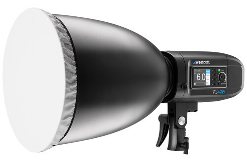 Finally is the light modifier. I want a softbox look without the sail-effect of an actual softbox. I wound up picking up a 70-degree reflector with a Bowens mount. This allows me to keep the light at a distance, and have the light diffused and spread out wider than the normal reflector that comes with the light.