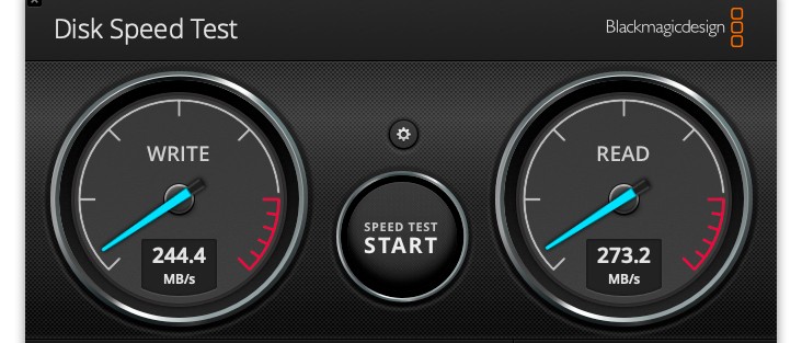 So starting with two 4TB, 7200 rpm hard drives gave me 3.63TB of storage space with the protection and it gave me this performance measured with Black Magic Speed Test.