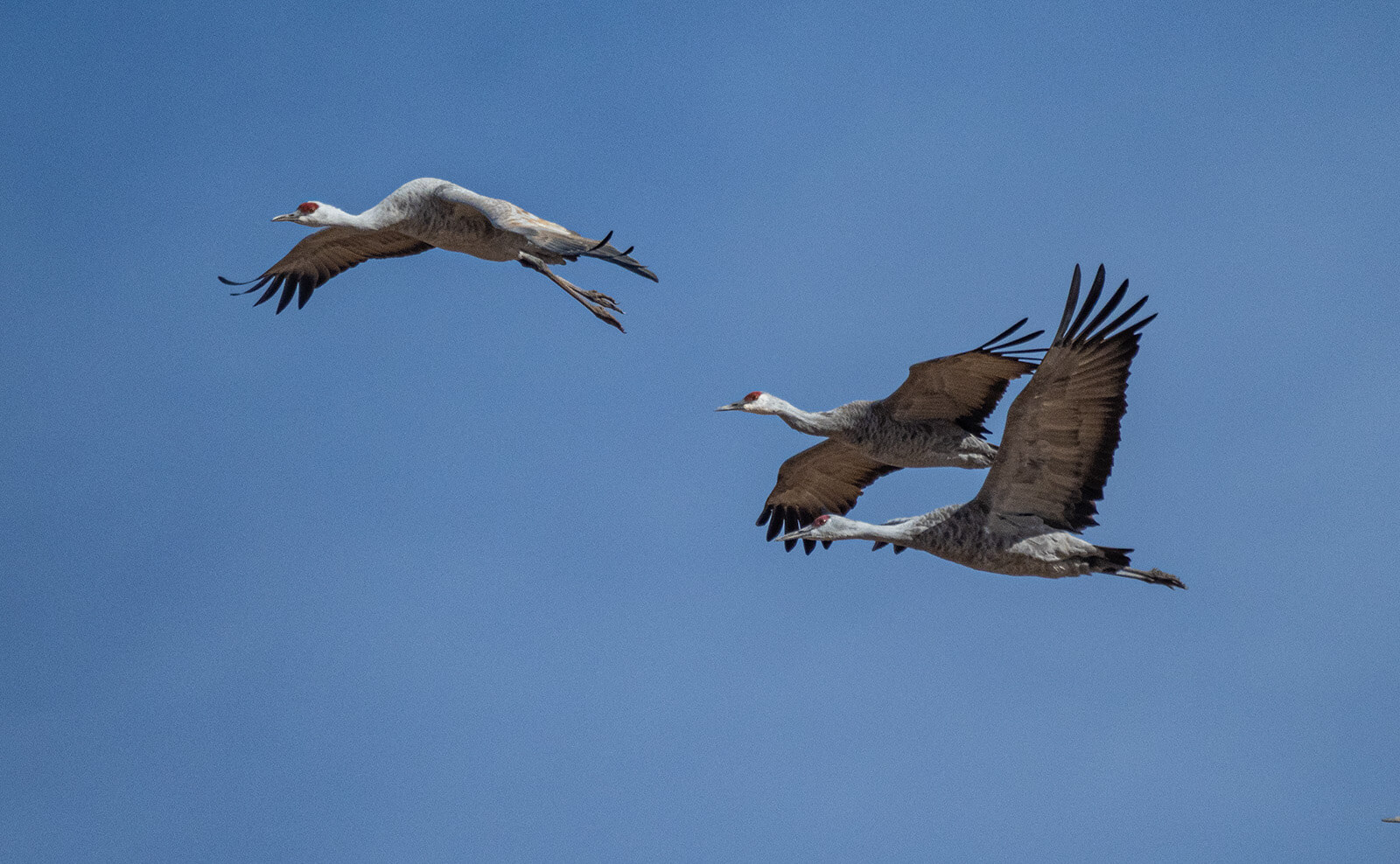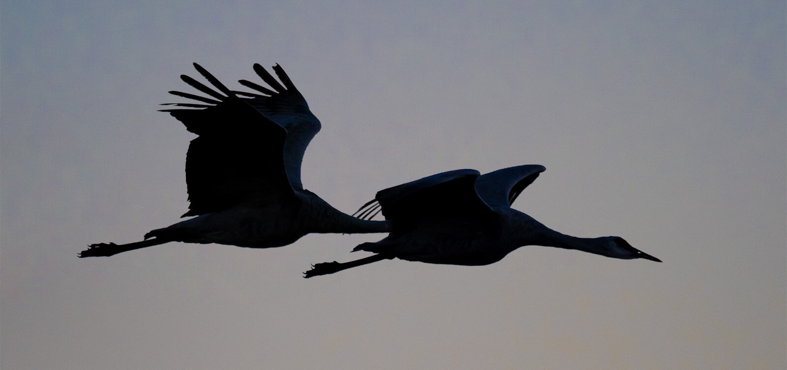As sandhill cranes mate for life they often will be seen flying extremely close together. If you are not careful the result can be as bad as the silhouette below. Moments before, the cranes showed as separate entities in and of themselves. Much preferable!