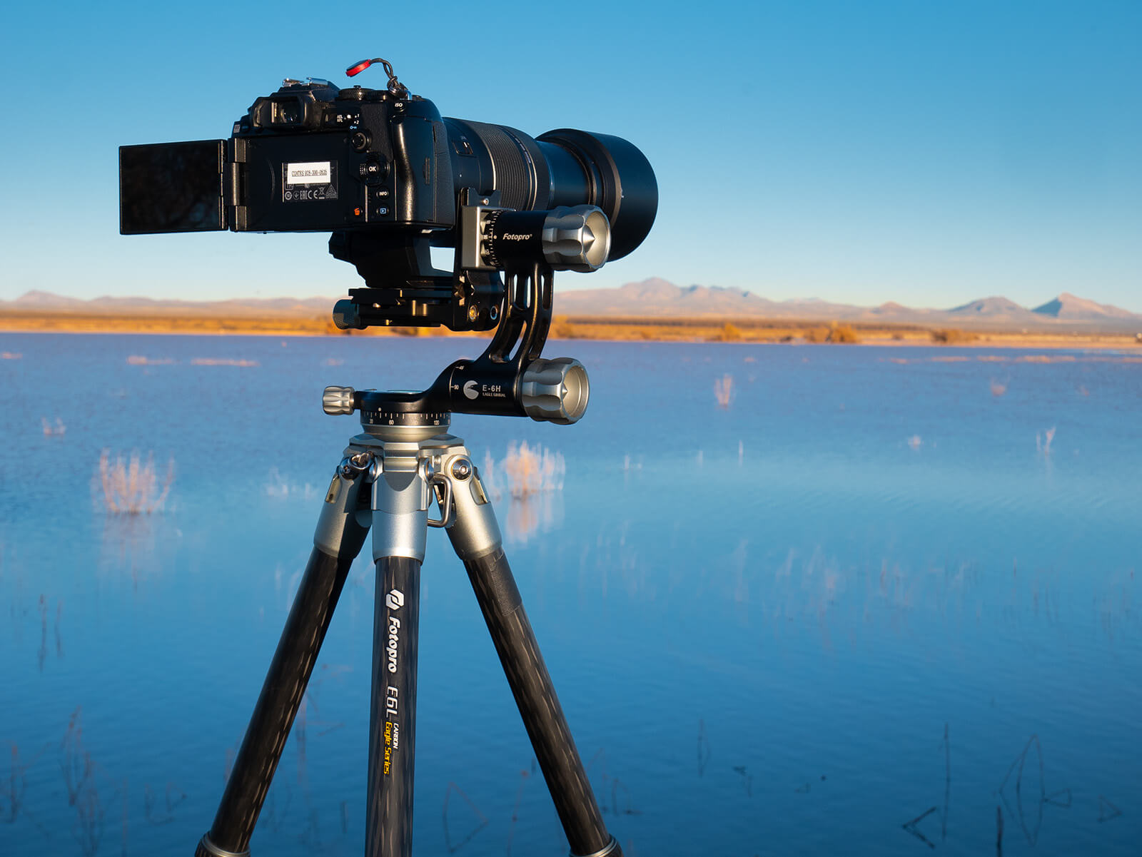 The majority of my wildlife work is made with the 100-400mm f/5.0-6.3 Olympus M. Zukio ED lens mounted on the OM-D E-M1 Mark III camera. In this case targets were a bit further away and I added a 1.4 extender. The net result is a field of view similar to a full frame 1120mm. Tracking the flight of the birds is made much easier, and steadier with the FotoPro Eagle E6L carbon fiber tripod. After starting to use a tripod with a gimbal head versus trying to handhold, my rate of keeper images went up exponentially.