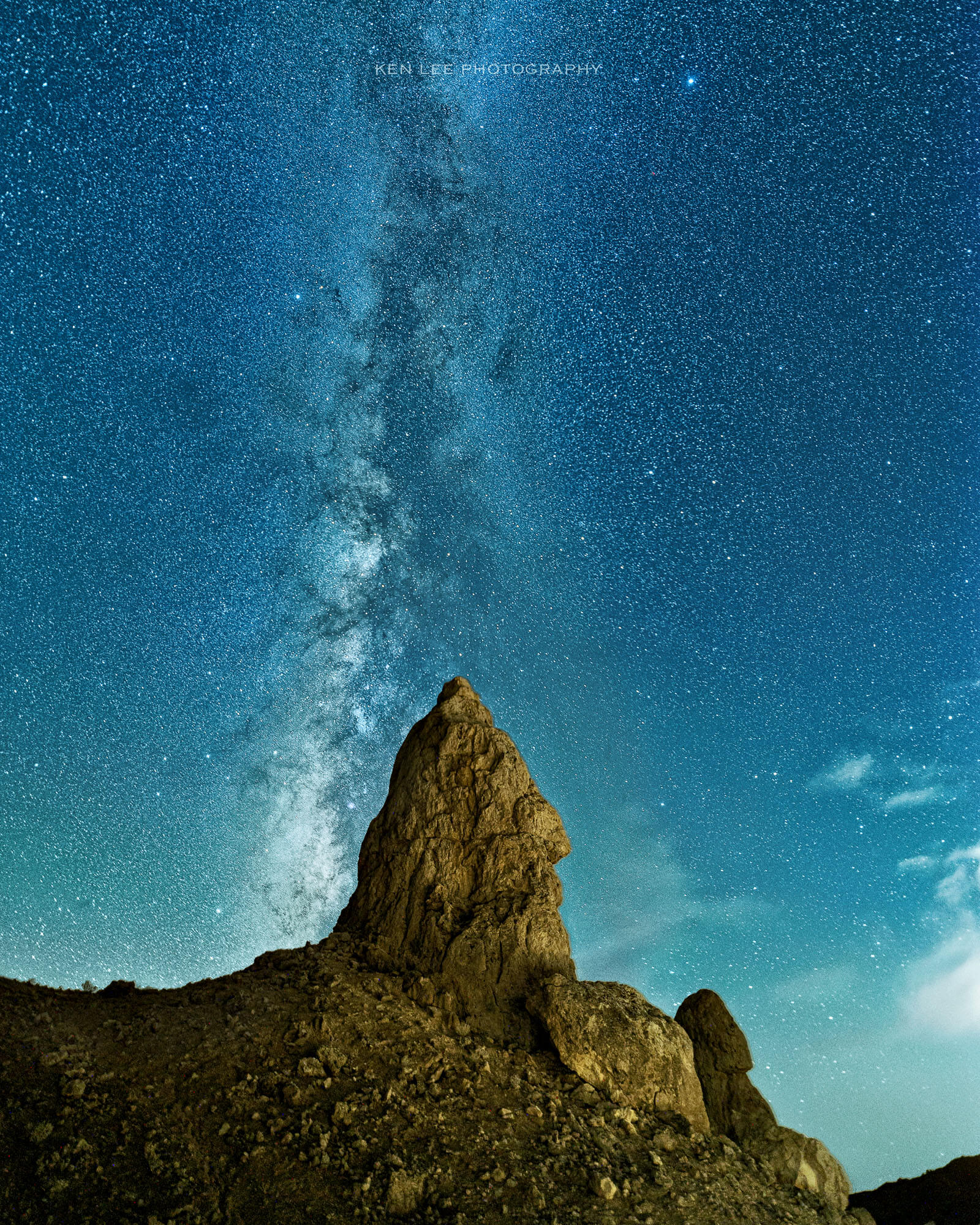 Let’s say we want our stars to look like pinpoints of light, much like the way they appear to us at night. We’ve shortened our shutter speed so that the length of exposure is short. That stops the stars from trailing. But oh no! The image is dark!