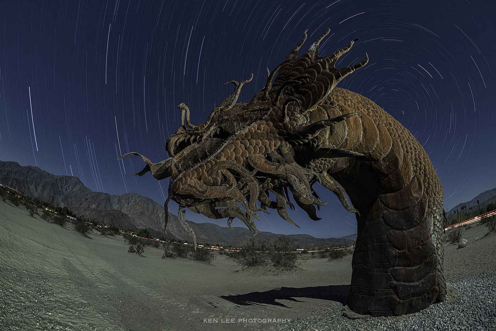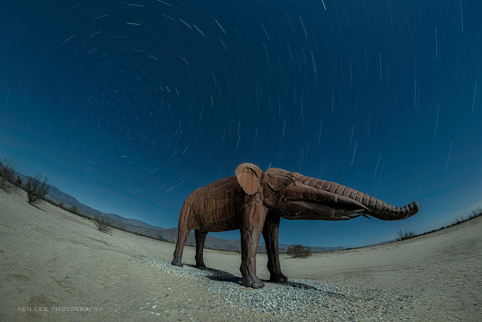 A month after surgery, I was ready to get outside and enjoy some night photography in the desert. I chose Borrego Springs. One of the reasons was that the magnificent sculptures that I was going to photograph were only between five to 10 minutes from the motel. The other reason was that the ground near the sculptures was level and didn’t have many sharp pointy plants.