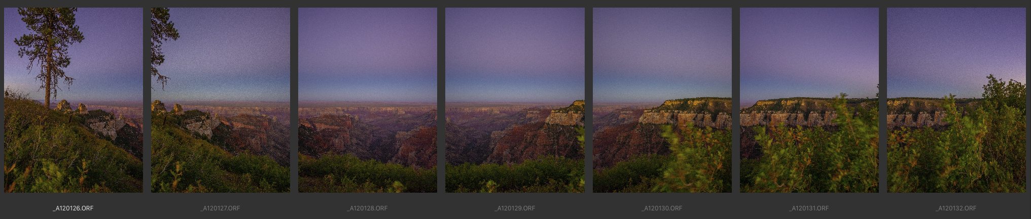 This Grand Canyon view jumped into my sight as I rounded a corner while heading back to camp. After a long day of travel, hiking and shooting, this sky made me pull over and race to grab my gear. Not having time to get out and set up the panorama head I did the best I could to get the lens close to the nodal point.