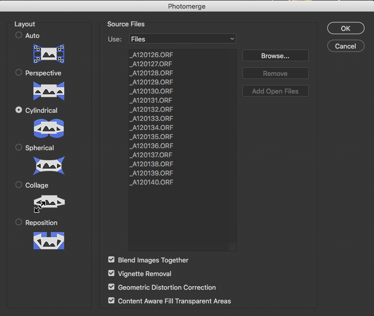 In Adobe Bridge, highlight all files for your panorama including the second row. From the menu bar, select Tools > Photomerge.