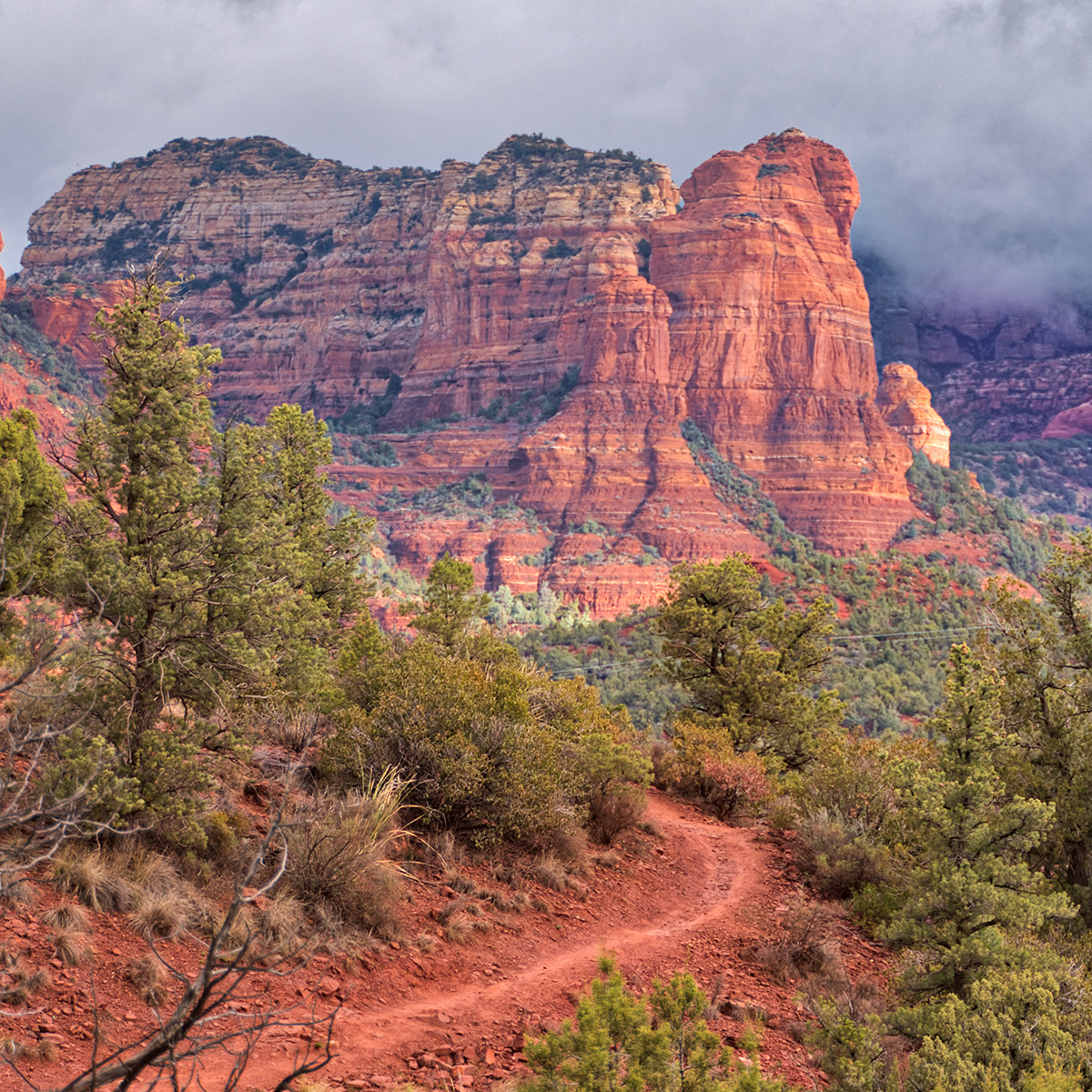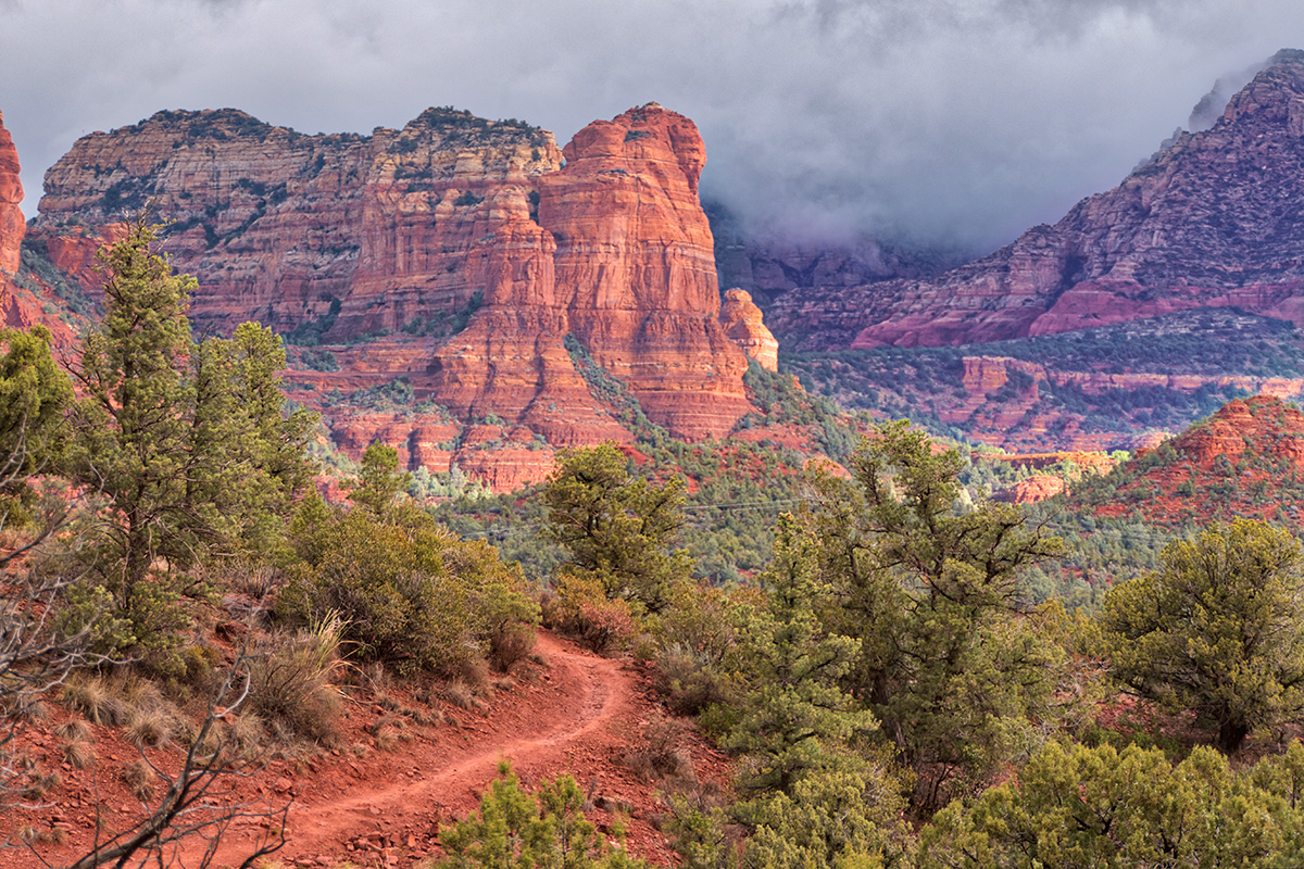 Living in Sedona, I have been privy to lots of beautiful changing scenery due to changing light conditions. The most interesting images happen on the edges of light when sunrise or sunset occurs. Or, when you find the edges of light where light spills through a window or under an overhang. Storms arriving or clearing are often wonderful ways to capture a different look. Today’s article is from just such a scene.