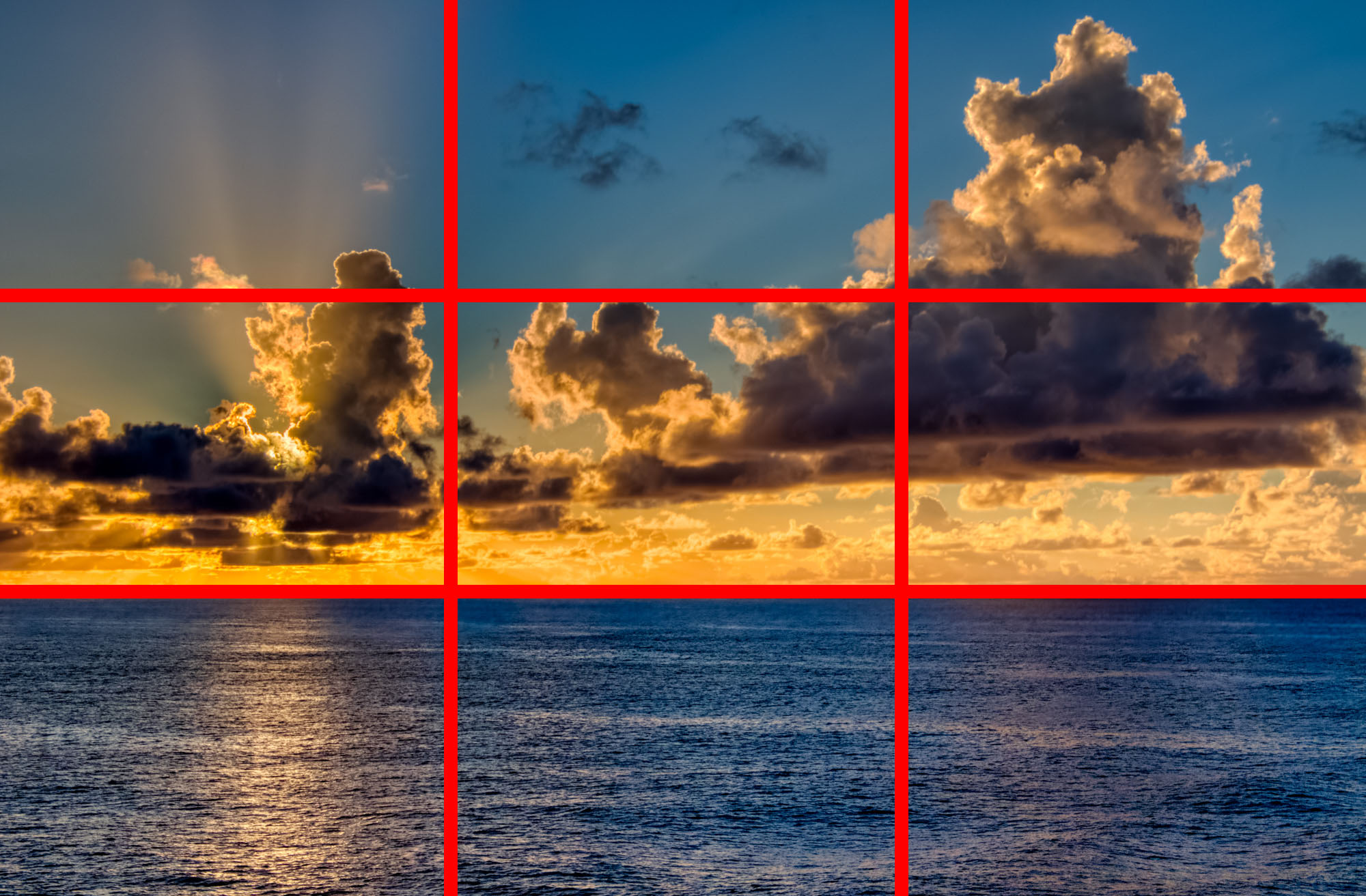 So, if you are photographing a hot-air balloon set against a clear blue sky, you might frame the scene so that the balloon appears one third of the way from the left edge of the frame. In other words, the balloon will be positioned along one of the lines that divides the image into thirds, in this case horizontally.