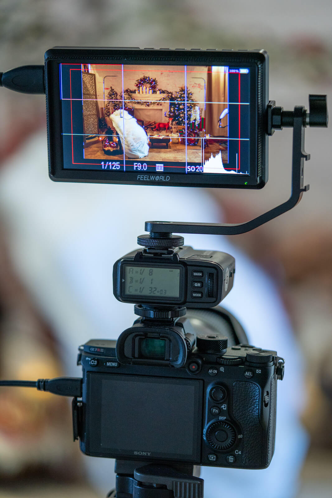 I was shooting with my Sony a7R III and the Tamron 28-75mm G2 lens. I also had my 5.5″ 4K LED Mini Monitor setup. So that it was well lit and everyone was in focus I shot at f/9. The rest of the camera settings were ISO 200 and a shutter speed of 1/125s. My lights were on full power (strip box), 1/8 (octobox) and the speedlight on 1/32.