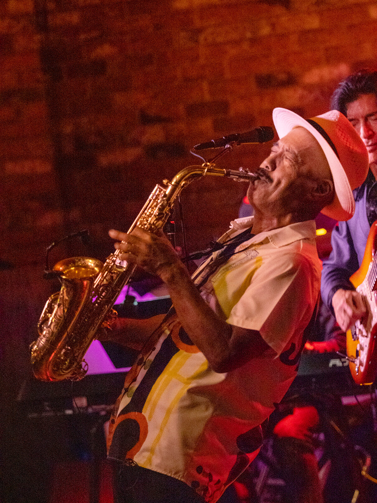 From this point I extract the musician and add elements such as changing the background to reflected Sound Bites Grill. Textures and color enhancement add to the “art look.”