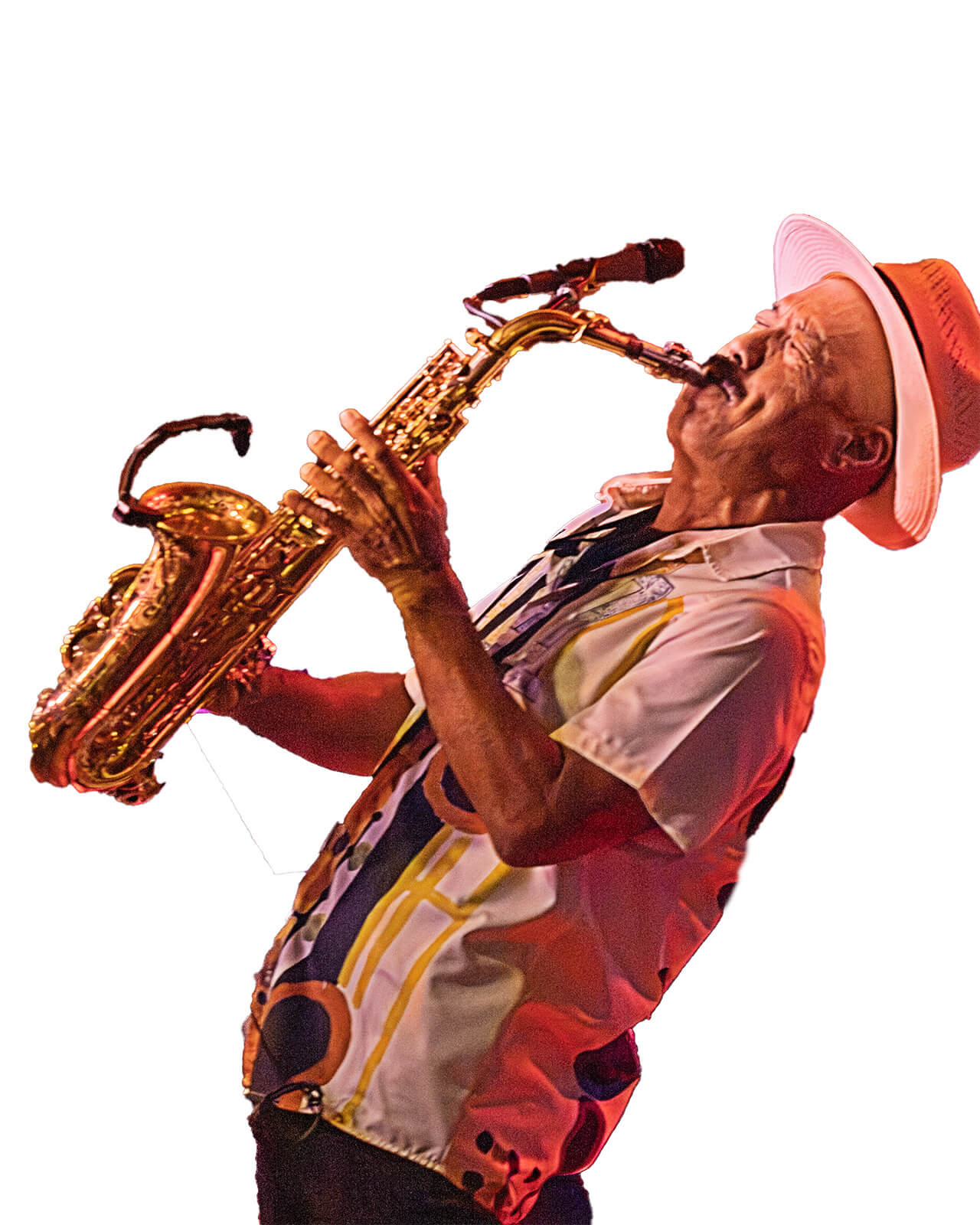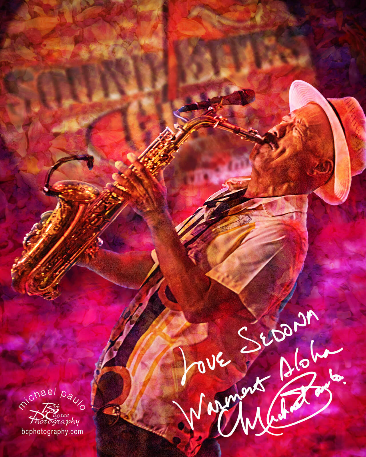 In this case, it was going to feature a single artist. Saxophonist Michael Paulo is an incredible energy on stage bringing up all the artists around him! I wanted to show him with that kind of energy in his Wall of Fame art piece. In my mind with his arched back and intense expression hitting those notes this was the pose.