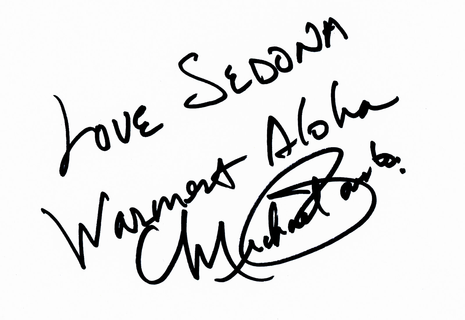 There is no way to get autographs and messages to the house after artists have left town for their next gig. I ask the musicians to use a black Sharpie to add their autograph to a white piece of paper. Paper is scanned and the file is brought into Photoshop. The image is inverted and the Blend Mode changed to Screen. The end result is the black disappears leaving the white handwriting behind.