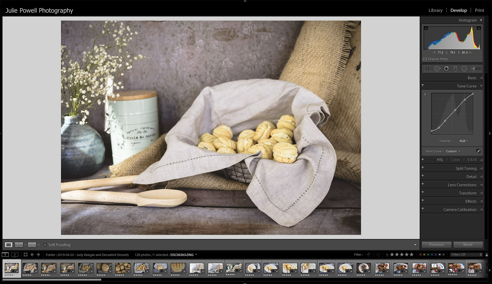 Try experimenting in post-processing, softening the highlights and taming down the shadows. Play with saturation and vibrancy; try de-saturating your colors for a timeless vintage look. Don’t add too much contrast, try dropping the blacks and highlights in a tone curve in Lightroom or a subtle S-curve in Photoshop.