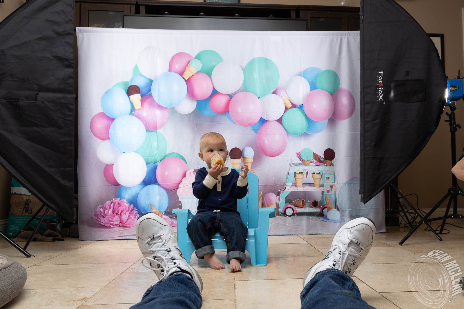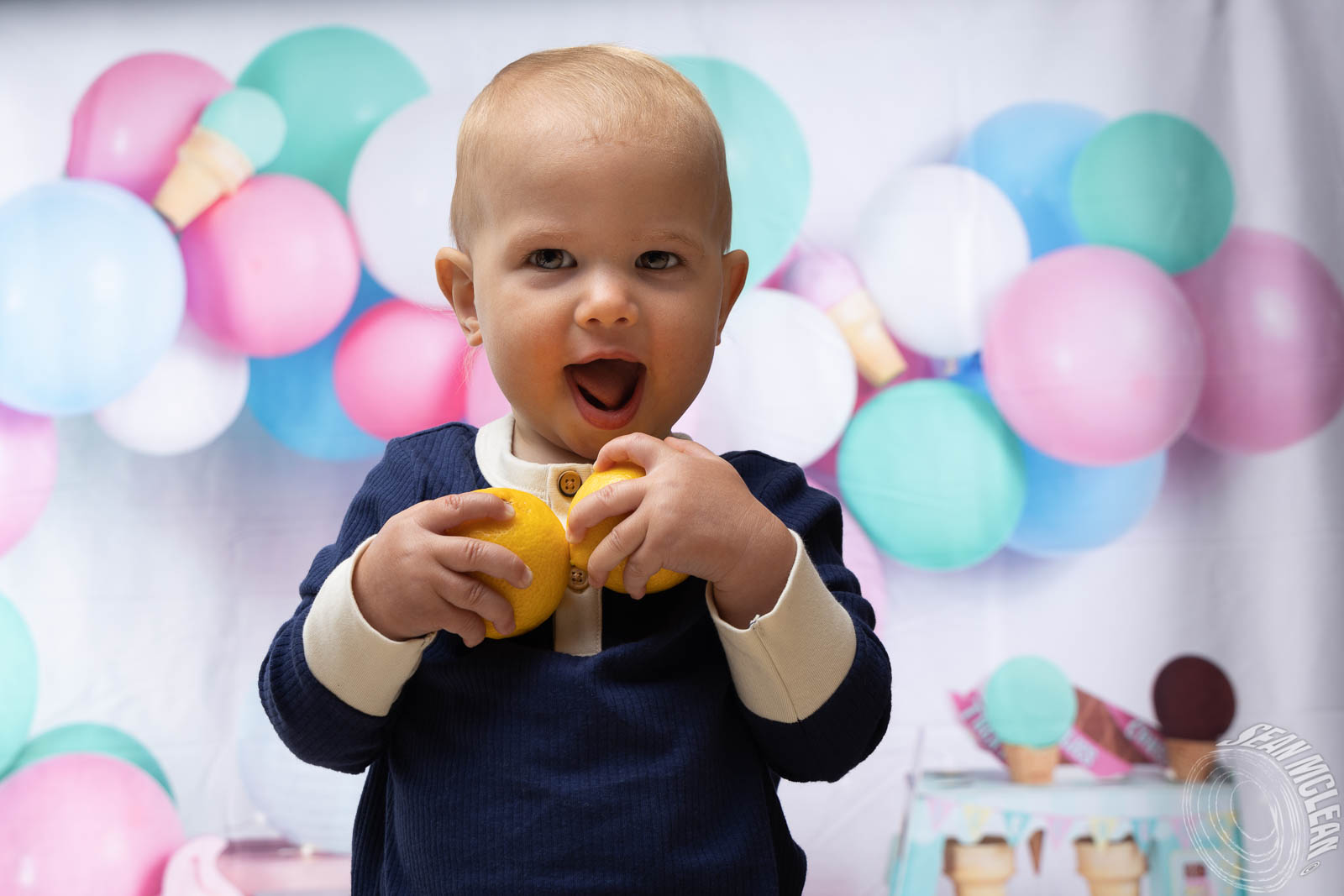 Some extra fun was added using a Kate Backdrop with a balloon and ice cream theme. The whole backdrop showed childhood innocence and joy. This was my first time using this backdrop so there were some new details to learn.
