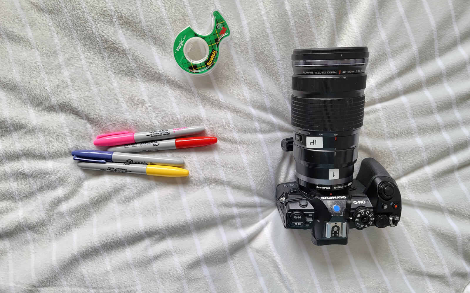 Second, take the tape and attach it to the outside of your lens. This way you avoid placing the tape directly onto your glass. Stretch the tape across the length of the lens.