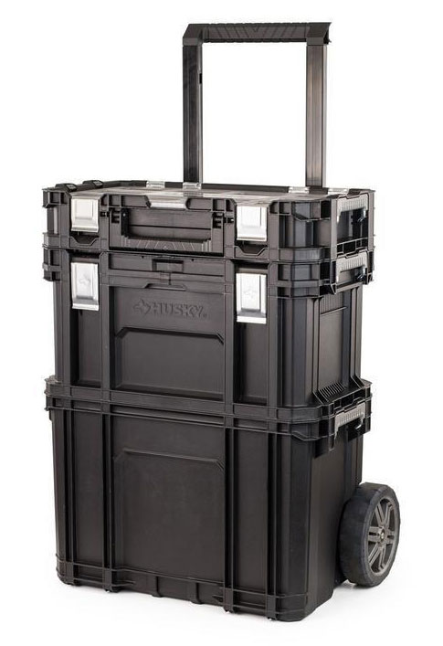 Take a look at this beauty! It’s the Husky 22 in. Connect Rolling System Tool Box. I honestly have never been so excited for a toolbox in my life because this sucker helped me eliminate three backpacks and one pelican case.