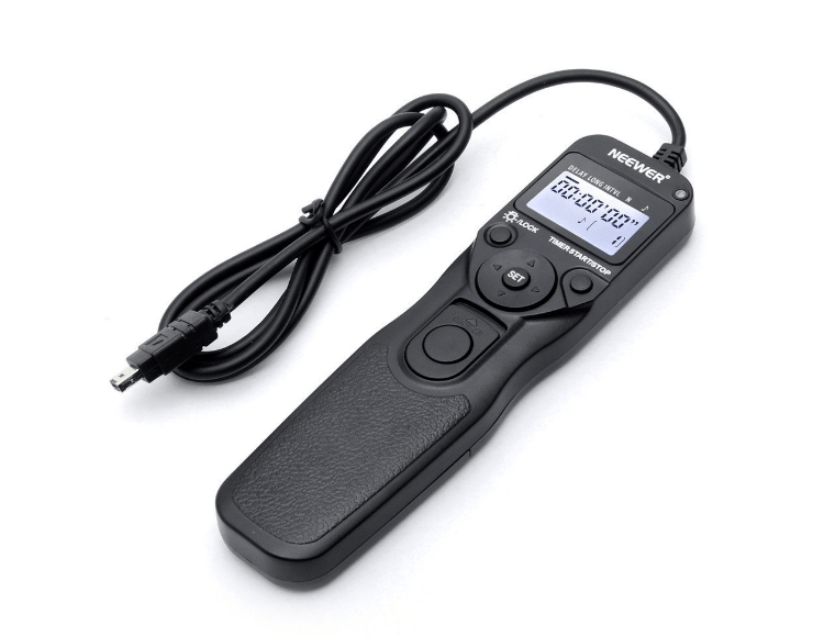Did you know when you press the camera shutter button, the camera shakes ever so slightly? To prevent this, we’ll need a remote shutter release for your camera. This lets you trigger the camera without touching it and keeps the camera still. You don’t need a brand-name trigger for this…you can easily find inexpensive triggers at camera stores or on Amazon for your specific model camera.