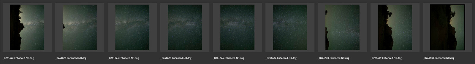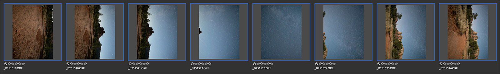 When capturing panoramas or vertoramas, you need to overlap your image captures. It is even more important that when making multiple panoramas for blends such as for Milky Way images as they need to be consistent. One more item which makes this work is an indexing rotator. An indexing rotator helps to make multiple panorama or vertorama sequences start and end at the same place. It also registers your overlap to keep things consistent. When making your first vertorama, pass count the number of frames. Moving the camera back to the beginning of the sequence is easy. Even better, when you stitch the different captures and place them together they overlap very closely. ie exposure for the land will be different from the exposure for the Milky Way at night. Blending them together makes it all come together.