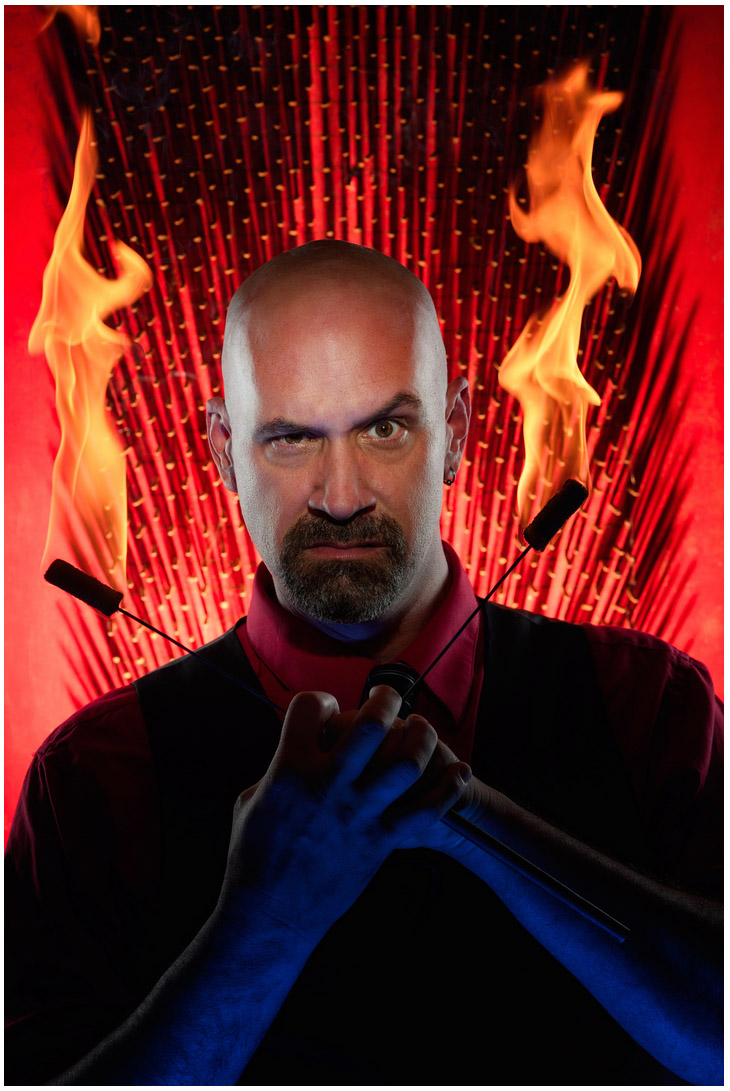 They recorded the setups, the lighting, the interaction with the subject, the crestfallen look up at the sky when freezing rain attended an outdoor shoot with a clown, and the shrug I had when the bed of nails a performer was supposed to lay down on turned out to not be a bed, but more like a 2’x3′ piece of board. They were there for the studio days, and the field days. They recorded jobs when I used the new Nikon SB-5000 radio TTL Speedlights, and when I switched off to Profoto B-1’s. And they also did a small stint at the end with Jon Cospito, as he retouched the final images. Soup to nuts, as they say.