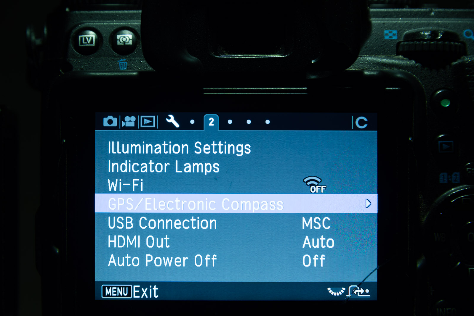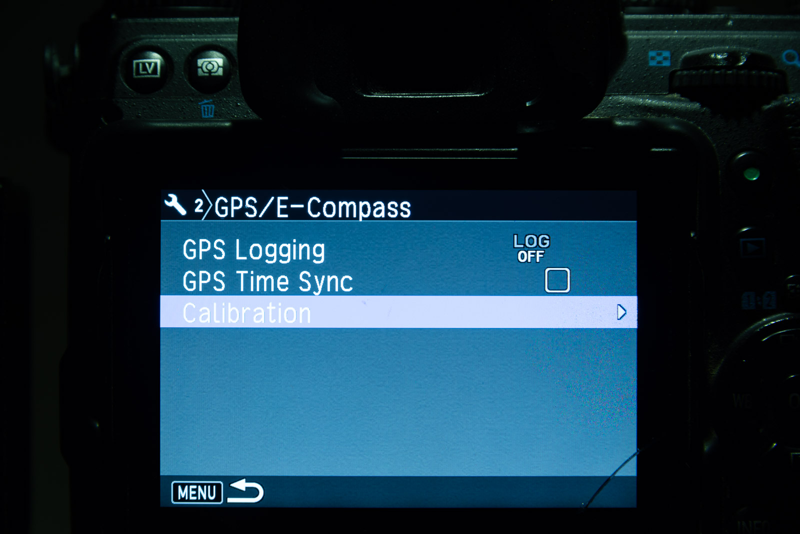 Next, we calibrate the GPS so that it will track the stars. Go to the Settings 2 menu and select the GPS/E-Compass, followed by Calibration.