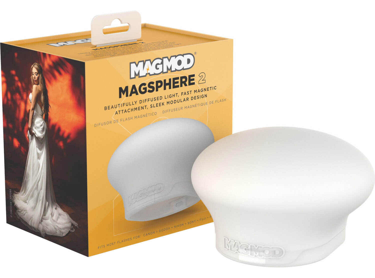 The MagSphere allows you to shape your light, turning it into something similar to a bare-bulb light source that you might get from a strobe. It works great as a light diffuser or small bounce card.