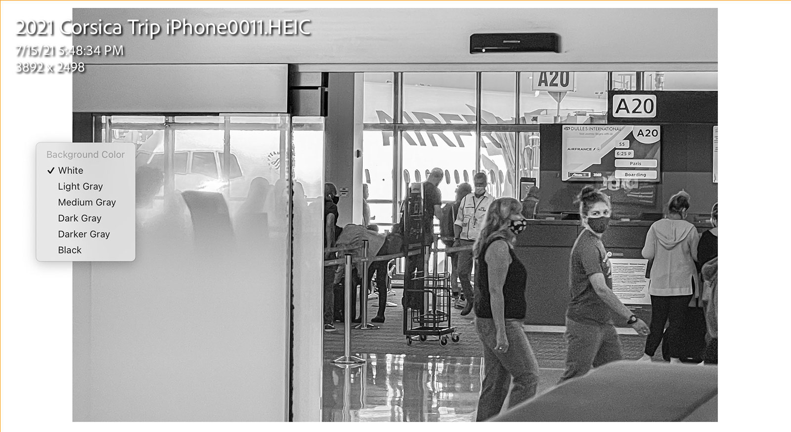 With all the technical goodies we have access to within our workflow, even if you get that correct, you can still have a problem in the final print with respect to brightness and contrast. In the Lightroom Classic Develop module, right-click on the background the image is presented on and change the background to white instead of using the standard gray or black background. Now compare the brights and whites to the white of the background before printing. The white in the background will show you instantly if your whites are bright enough.