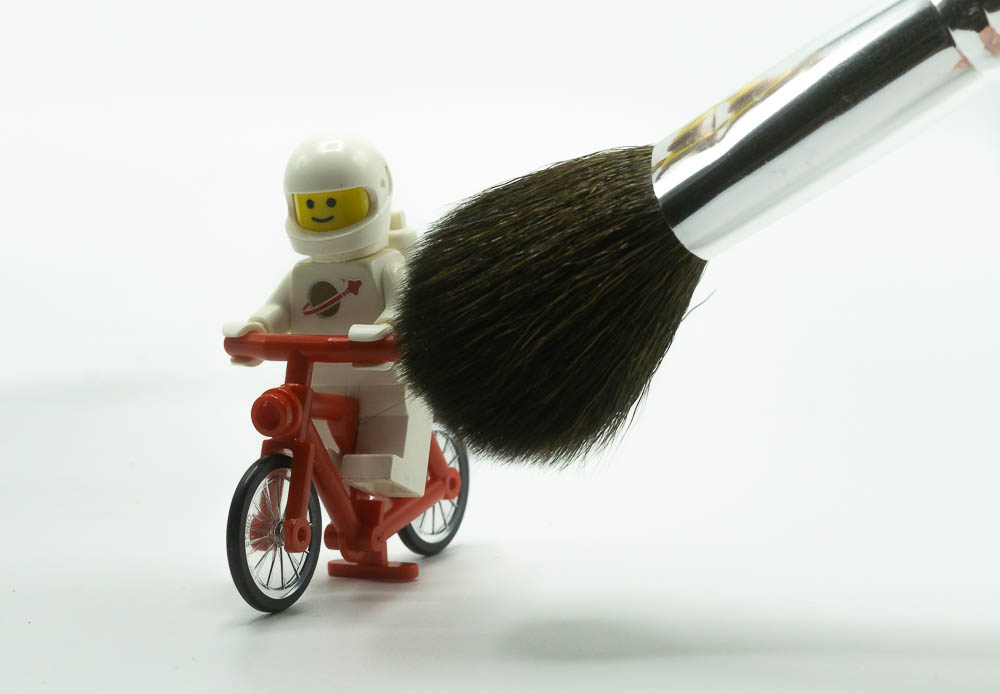 While a cloth is effective, it is almost impossible to wipe down a minifigure, or an action figure, without moving it. Setting up a scene can take a long time, and getting toys back into the right position after moving them can be tedious. So this method is best used before you set up your figures for a shot.