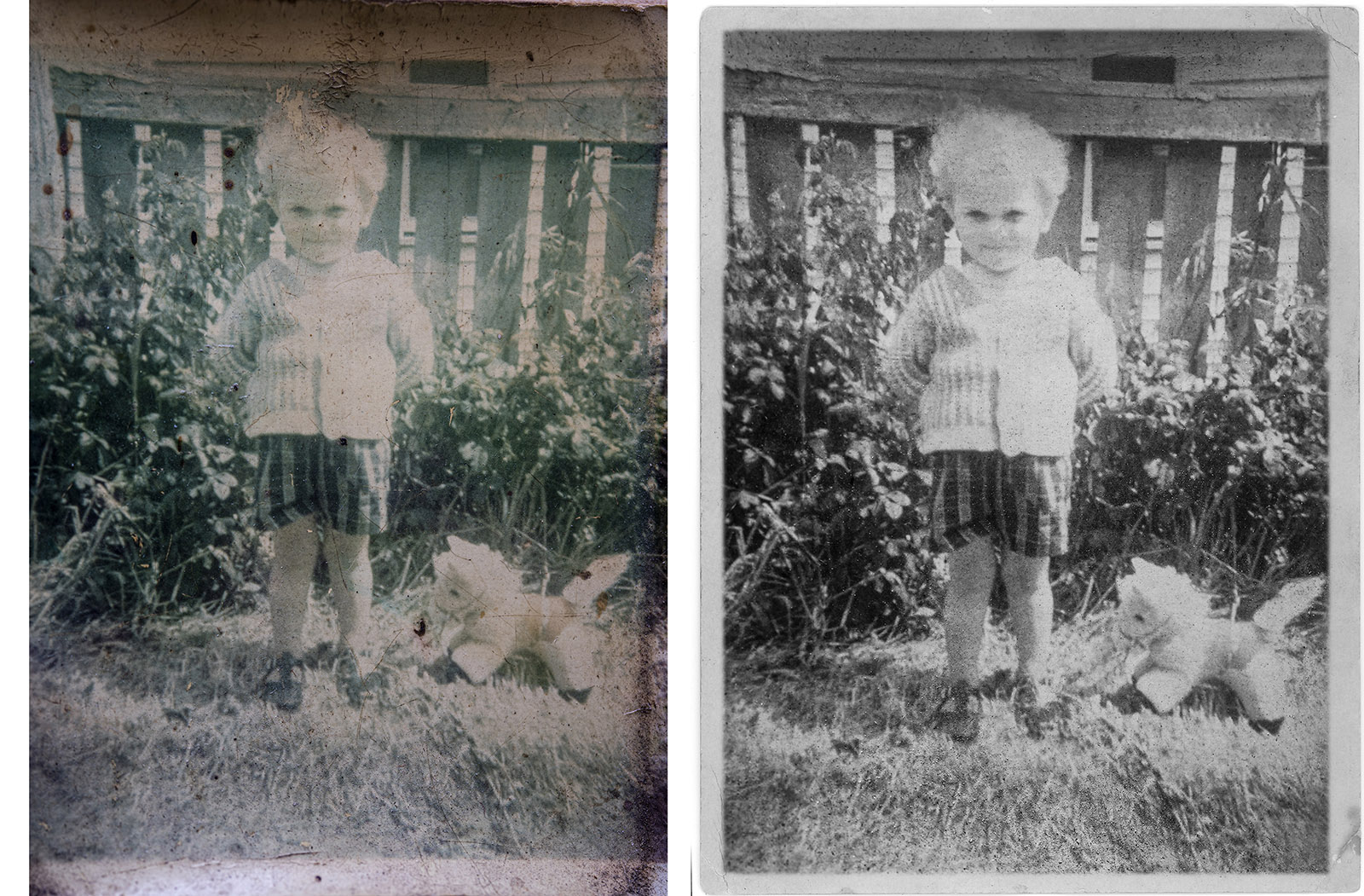 You may encounter a few problems with older photos. Some may need to be digitally restored. This can be achieved in Photoshop or a variety of other programs. A few minor scratches can be easily taken care of (as in below) with the Healing Tool and Clone Stamp. Mark Morrow has a few tips on dealing with slides and negatives.