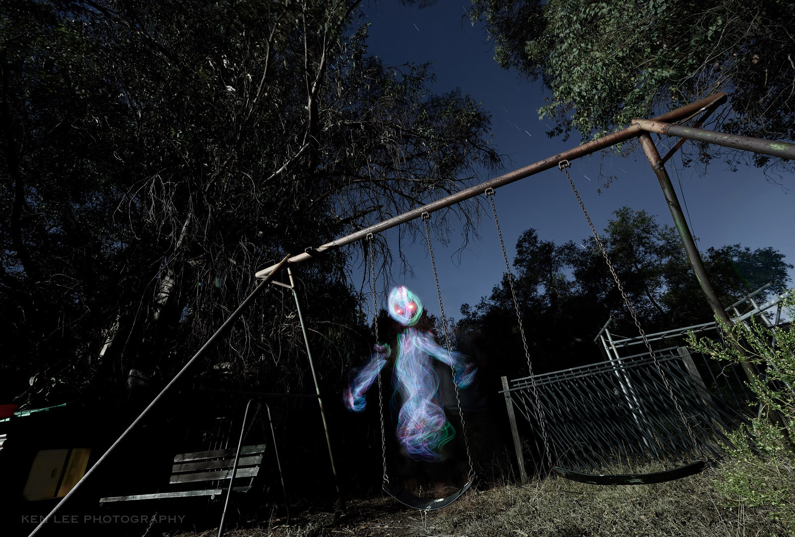 Since I have had a dearth of encounters with ghosts, I thought I would create my own ghost. I created a light drawing of a ghost floating over a swing. If you want to learn how I created this, check out this article!