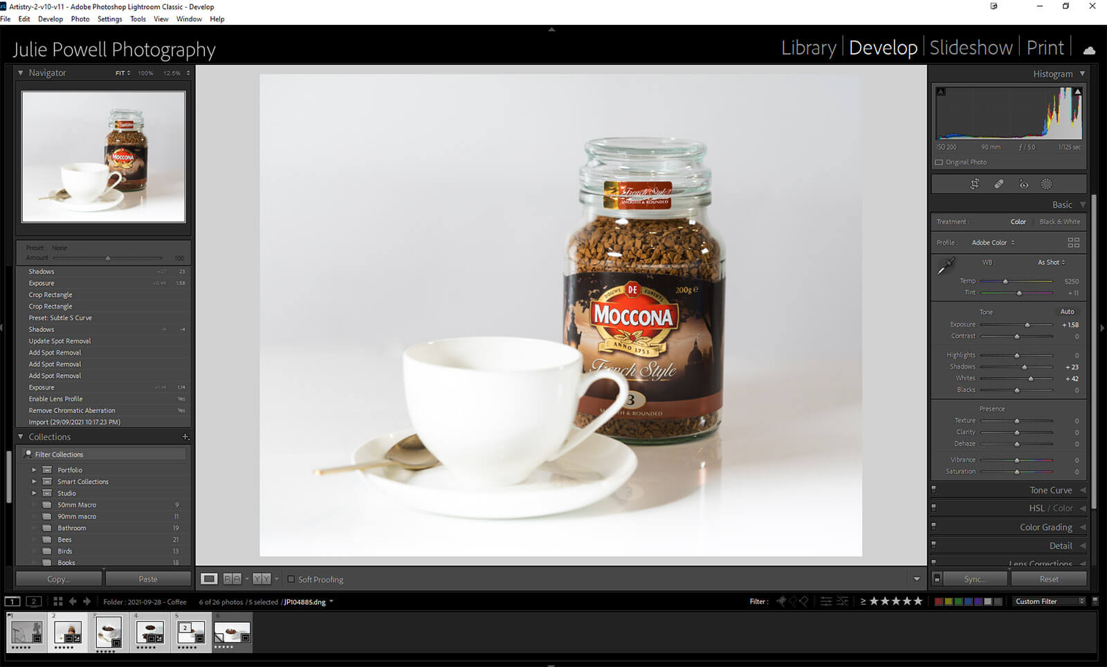 Edited the shots in Lightroom Classic, lightly, letting the beautiful light shine through. I increased the exposure as I had shot it a bit dark. I also increased the whites and the shadows — I wanted it nice and bright.