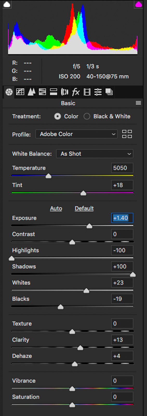 I decided to see what information could be recovered. Opening the file in Adobe Camera RAW I applied corrections, including bumping up the exposure and shadows quite a bit. My gut instinct was that pulling that much detail from the shadows would render the file so noisy as to be unusable. Wrong I was.