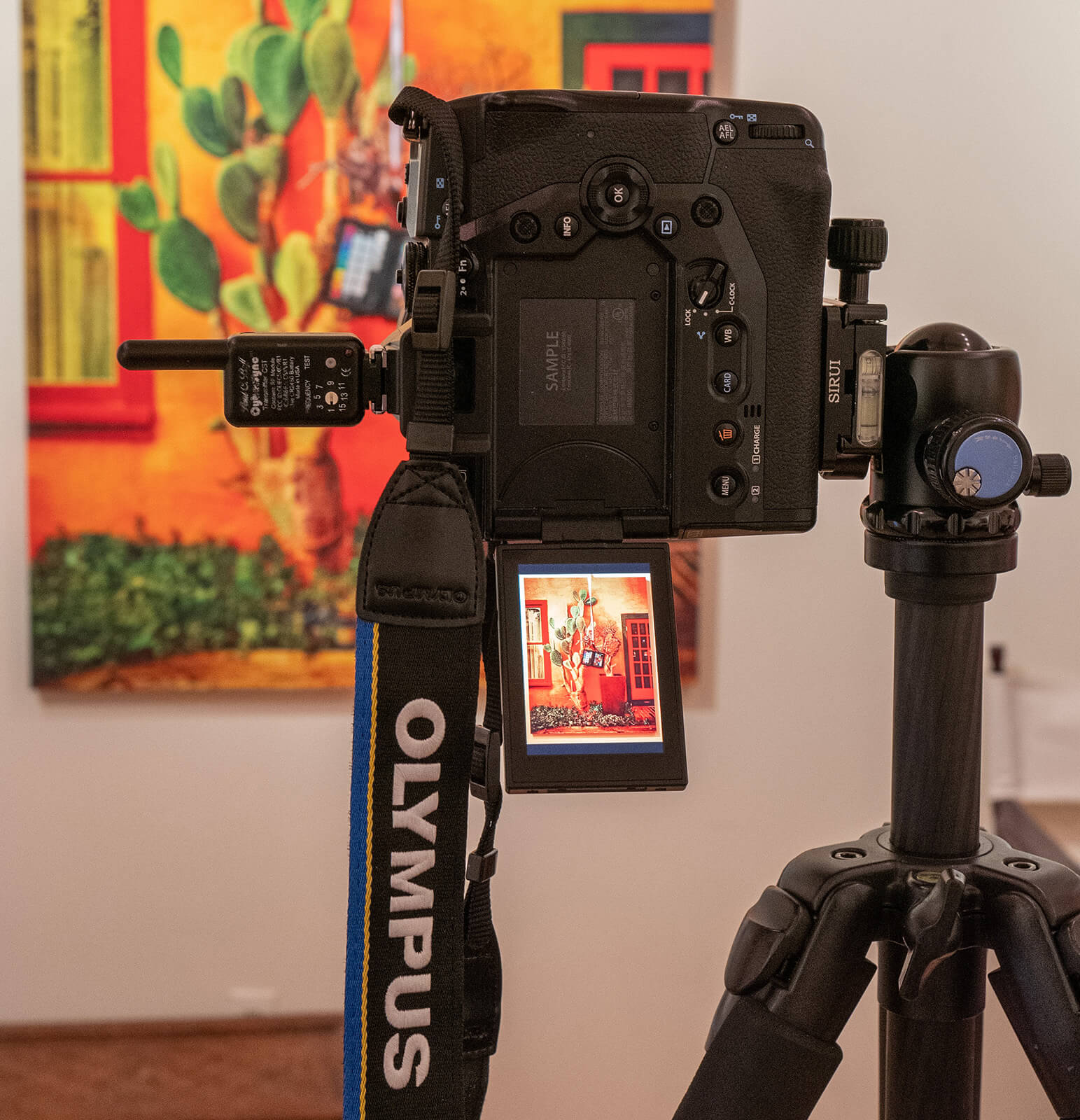 I regularly photograph artwork for reproduction, which require completely different settings from almost every other type of photography I do. Settings include High Resolution Mode, which makes my 20 MP camera create 80 MP files.