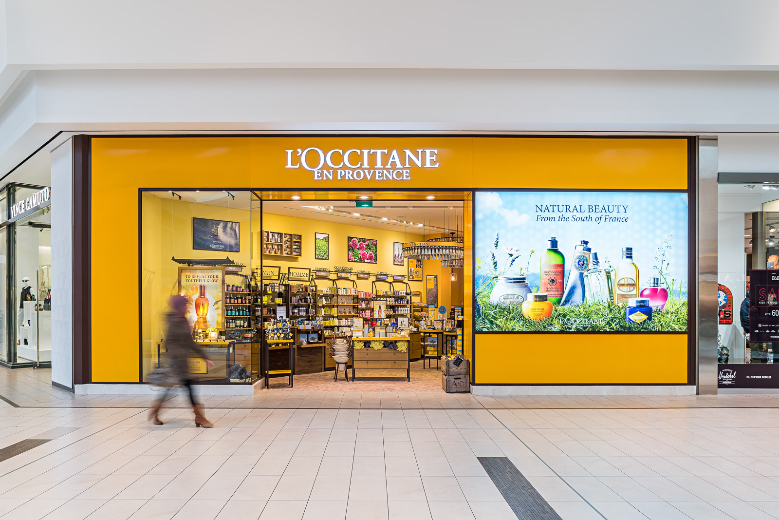 One of the best tricks to photograph people, especially inside, is to use a slow shutter speed to blur them slightly. It creates motion and blurs their faces, rendering them anonymous. To get enough blur, but not so much as to have them disappear, aim for a shutter speed between 1/20s and 1/2s. If they’re walking towards you, you’ll need a slower shutter than if they are walking by you.