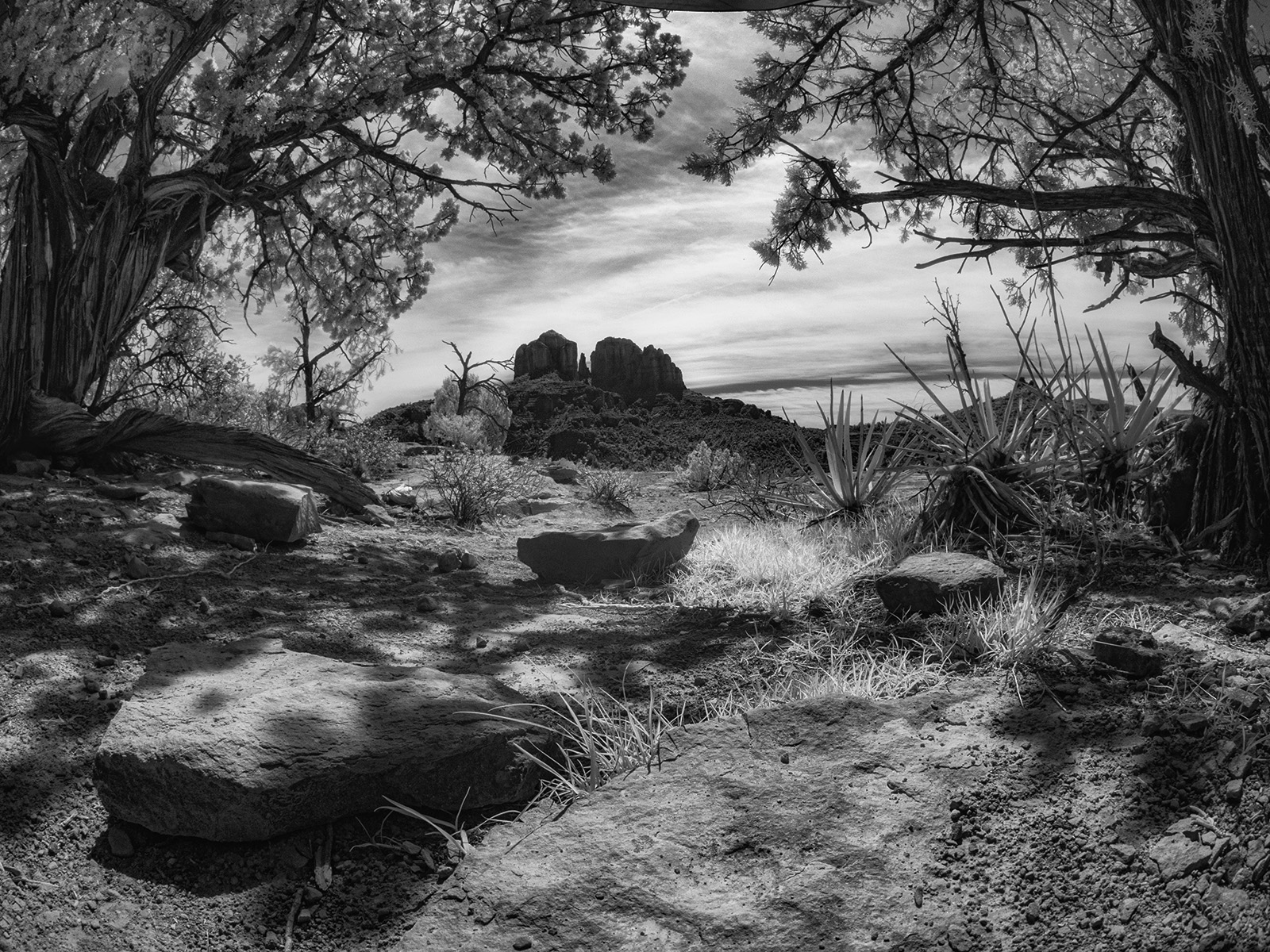 I wasn’t planning on making photos due to the time of day. I found this little arch and explored the way it framed the infamous Cathedral Rock and had to make a photo. My Lumix GH4 camera, which was converted to IR by LifePixel Infrared. worked to give me a look that pleased me at this high-contrast time of day. If you have a camera languishing on the shelf converting it to IR can give it a new life.