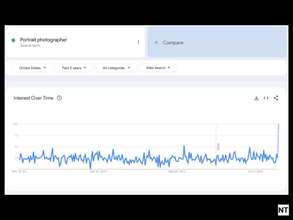 To gauge the trend and demand for portrait photographers, one approach is to analyze Google Trends: