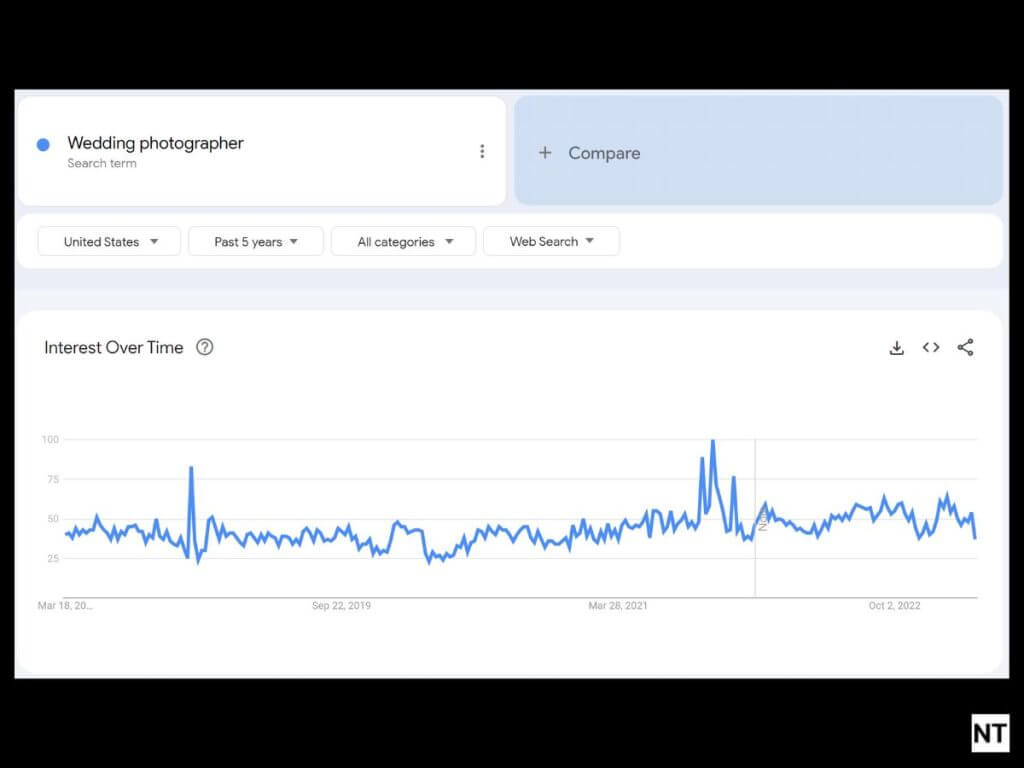 Let’s now take a look at the trend chart for wedding photographers: