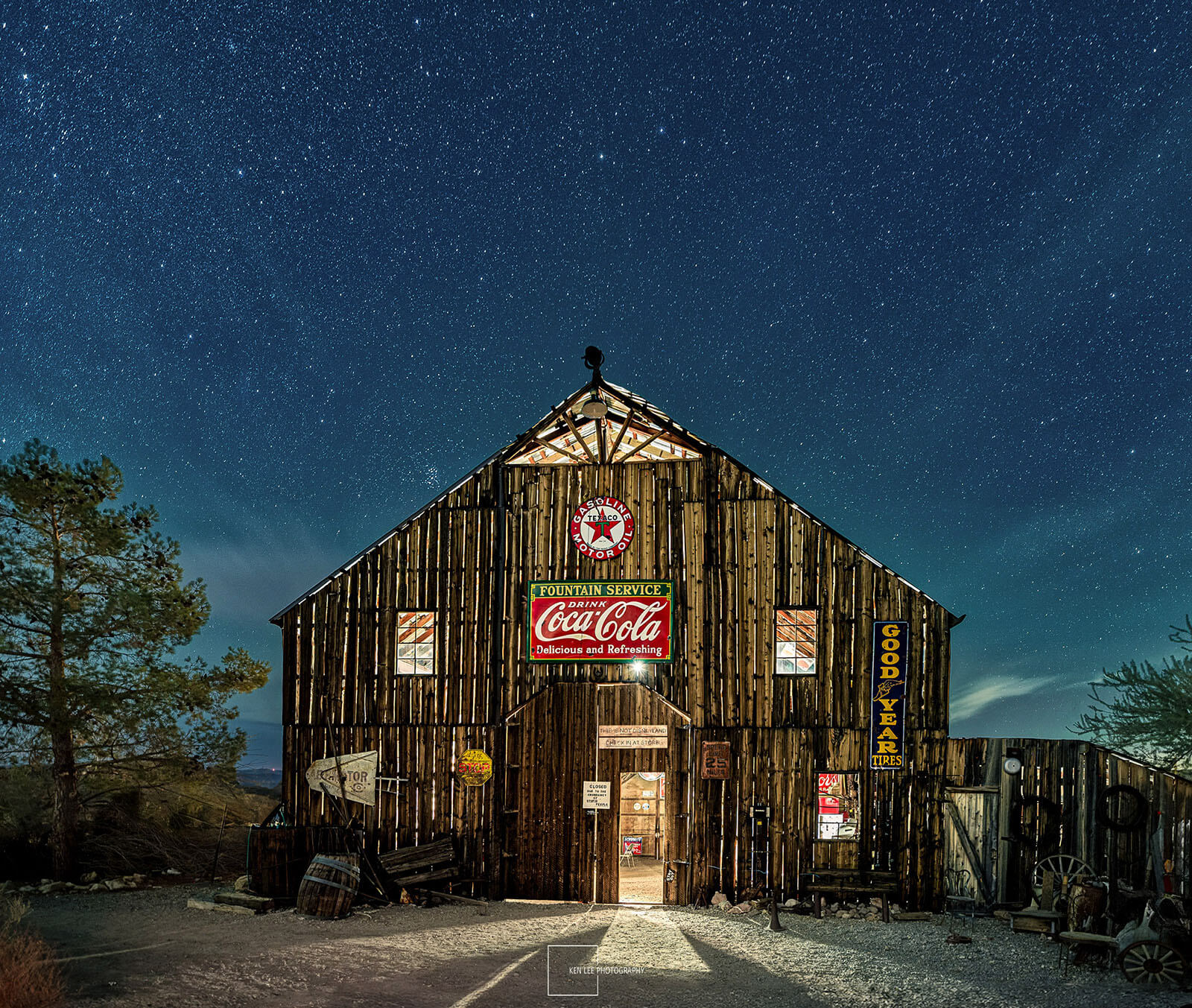 After illuminating the sign, I walked back to the camera. I shut off the lock on the intervalometer so that the shutter would close. The shutter had been open for 265 seconds! That’s right, it had taken me almost four and a half minutes to light paint the barn’s interior and the sign.