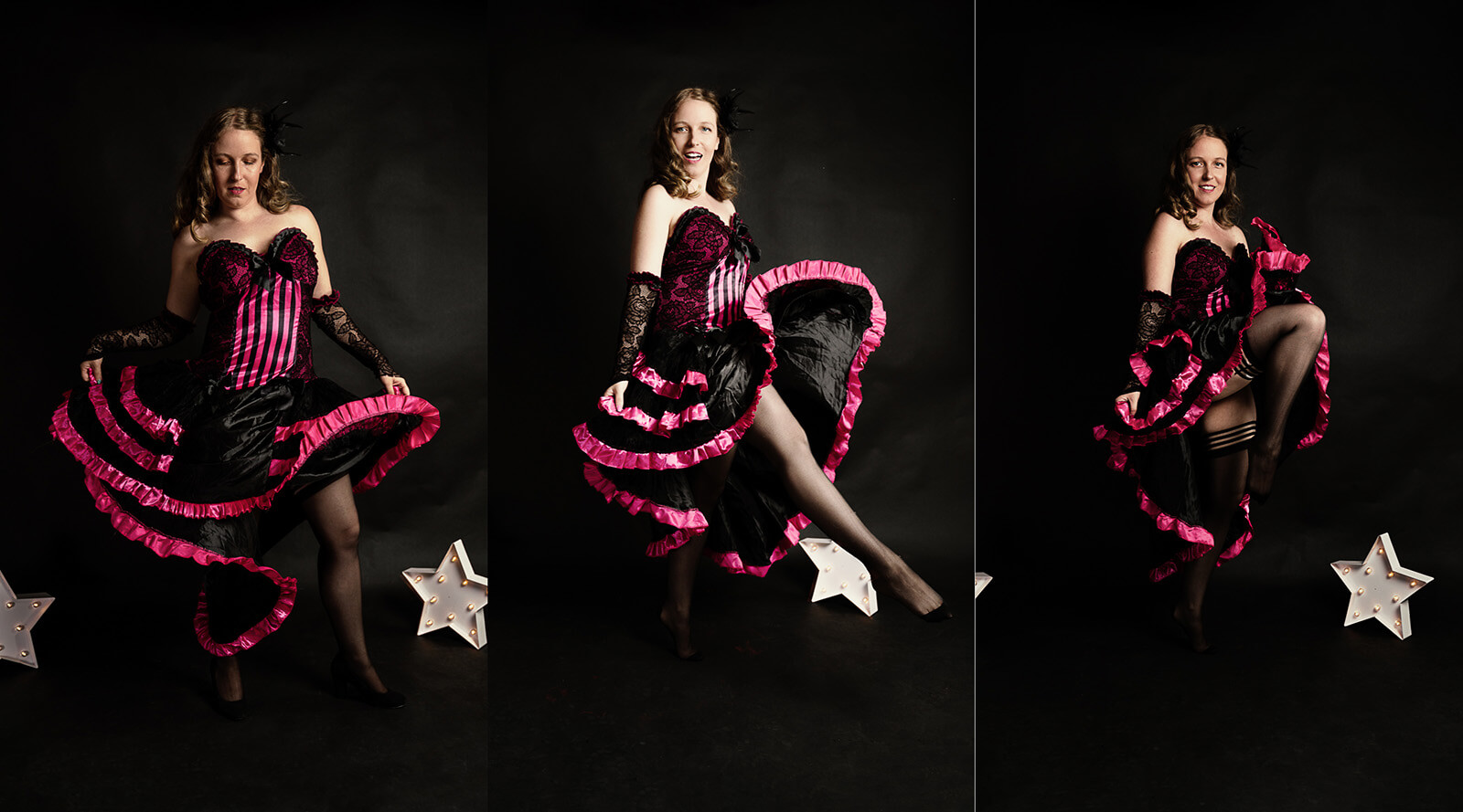 Not all cameras or all flashes have this function, but I bought my Godox AD400Pro because it does. It allows me to shoot my Sony a7R III in burst mode at this slightly higher shutter speed to capture some movement and action in the studio. Like Emily’s can can kicks, with no blur.
