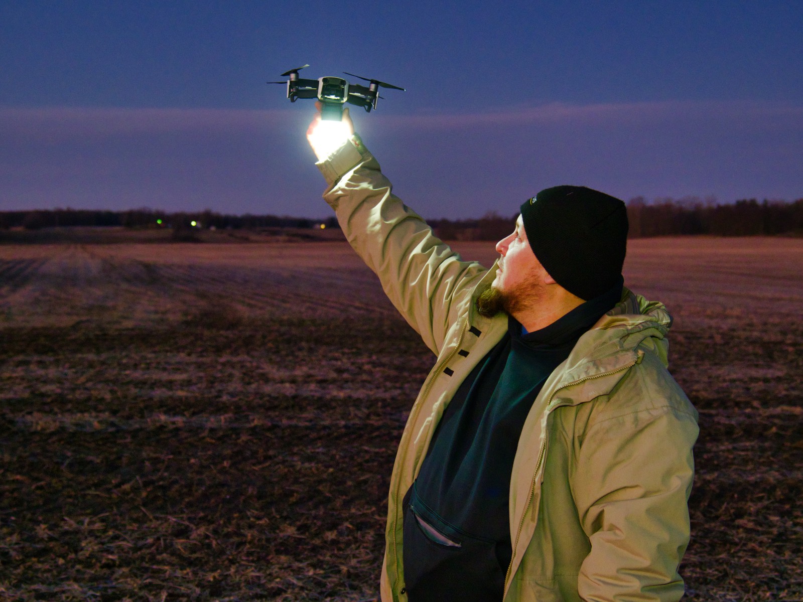 We first tried attaching a Lume Cube Air to the bottom of the drone, as it was lighter than a regular Lume Cube. The problem was, the Lume Cube Air had a built-in magnet and caused the drone to act unexpectedly. It crashed almost as soon as we put it into the air.