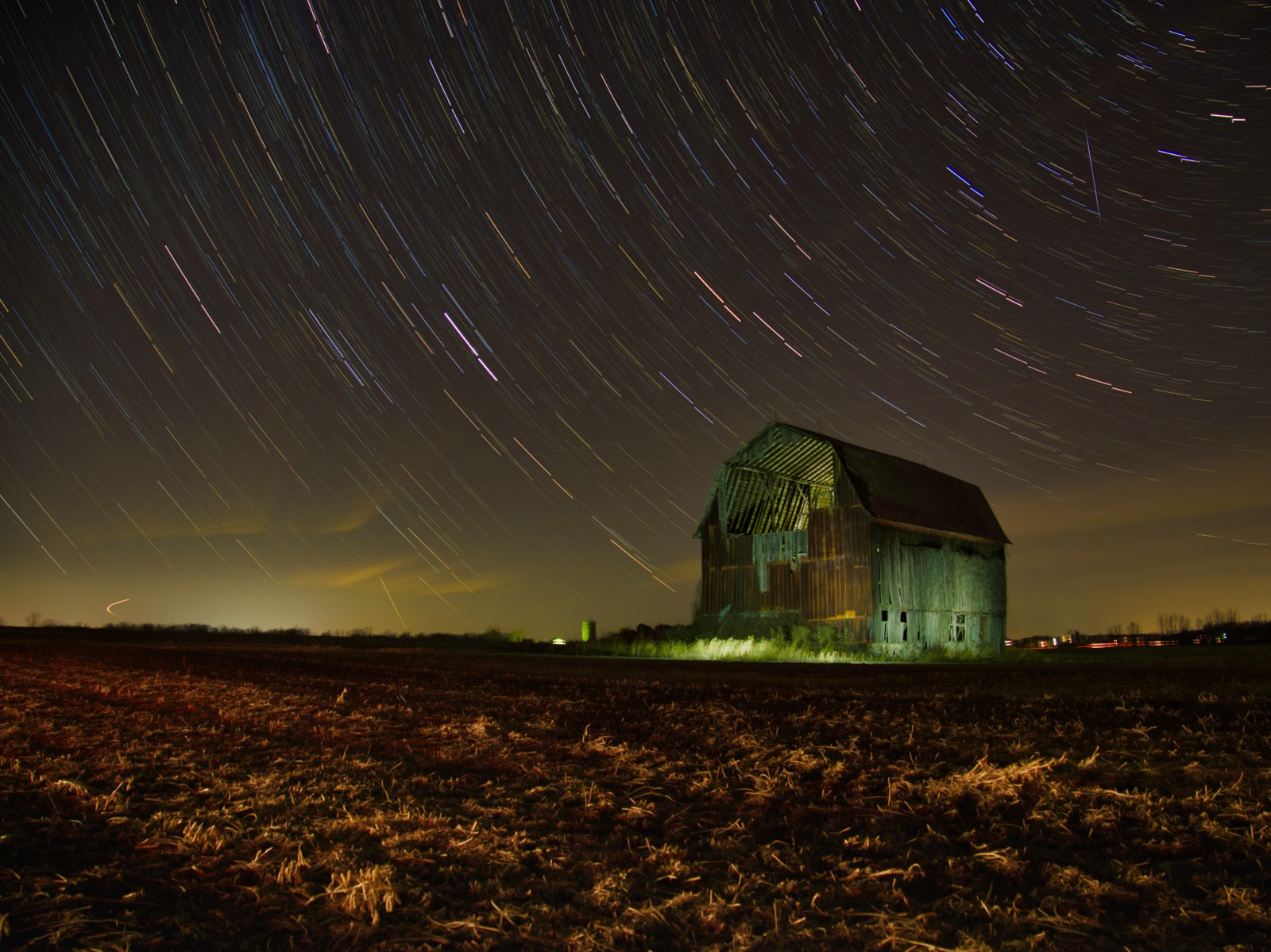 Once we were setup, Jamie grabbed a Lume Cube Air and ran to the barn. He started off inside, lighting the upper level of the barn. He walked around so we could get light throughout the space. From there, he went outside, and lit each side of the barn for about a second or so — just enough to grab a pop of light with the Live Composite. I let my exposure run for about a half-hour, which created some really nice star trails in the sky.