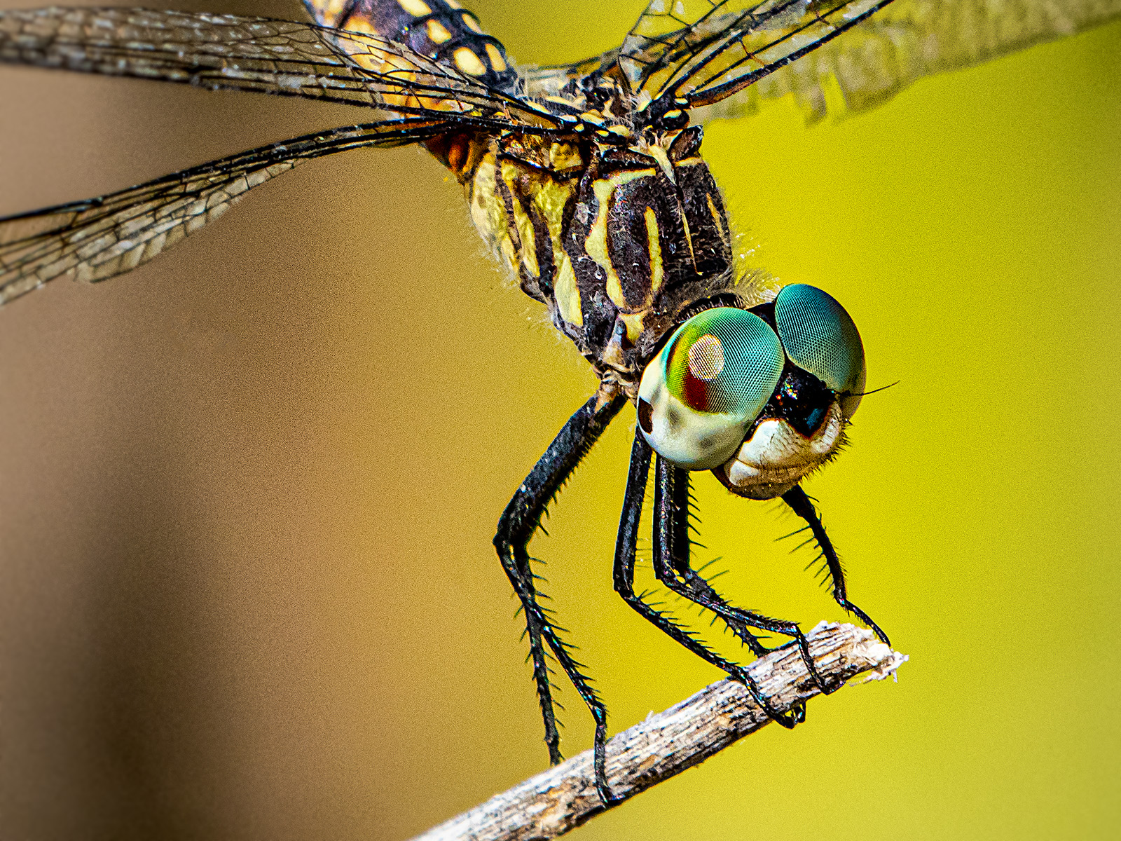 Surprisingly, the loss of quality was minimal in a fully lit scene. You do become limited when the light gets low, but there are many times I could put this to good use. For example, this dragonfly pretty much filled the frame. I was excited to see all the little lenses in the eyes. I haven’t been able to get this close in the past to register this kind of detail.