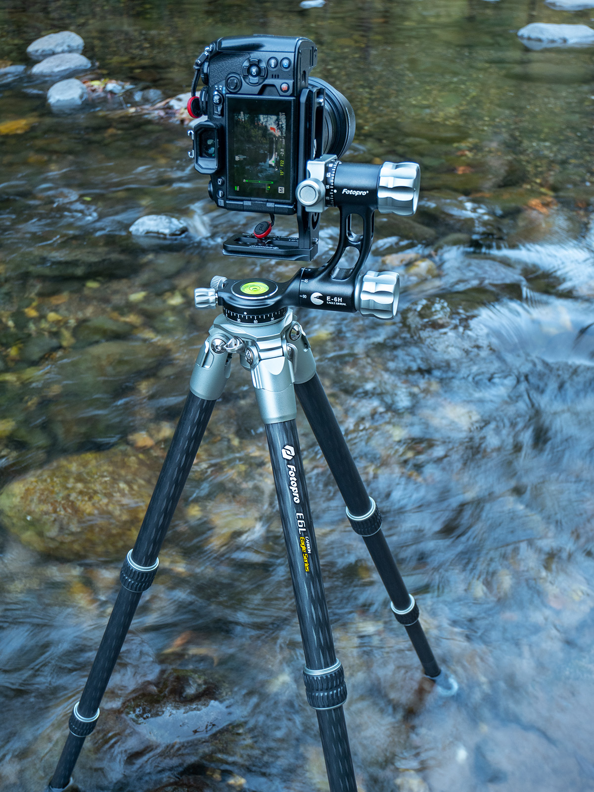 A 25-second exposure calls for a steady tripod, so I relied on the Fotopro Eagle E6L. This is a light yet sturdy carbon fiber tripod with dust and waterproof legs. I like the quick level ball head for making leveling adjustments without having to adjust the legs.