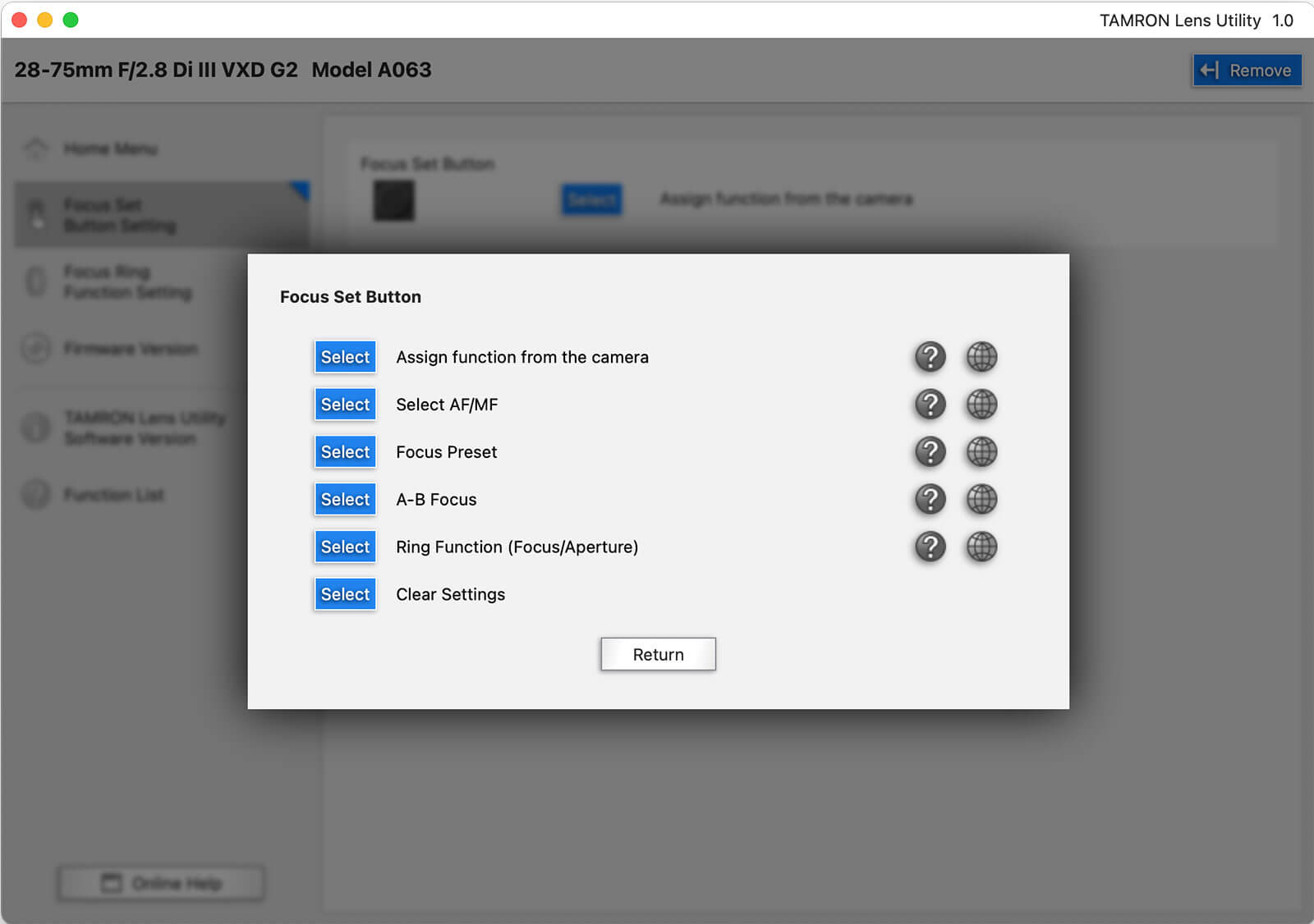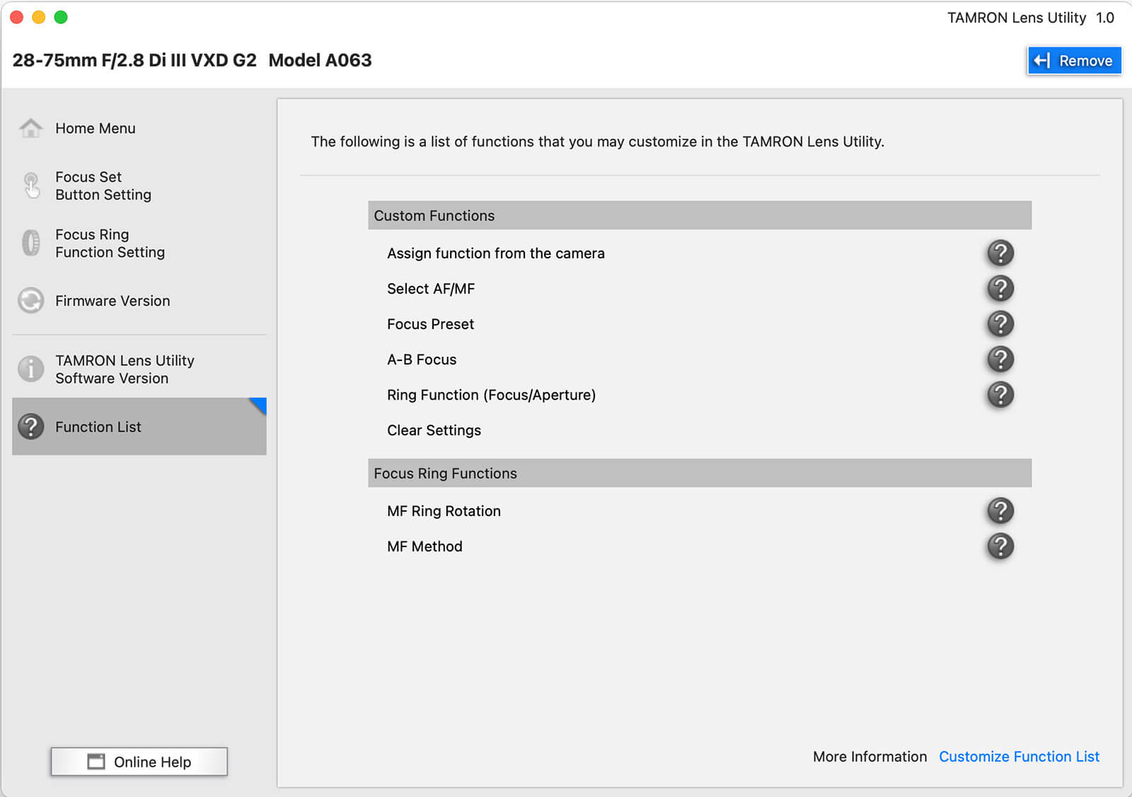 Finally, the Tamron Lens Utility also lets you easily update your lens’ firmware.