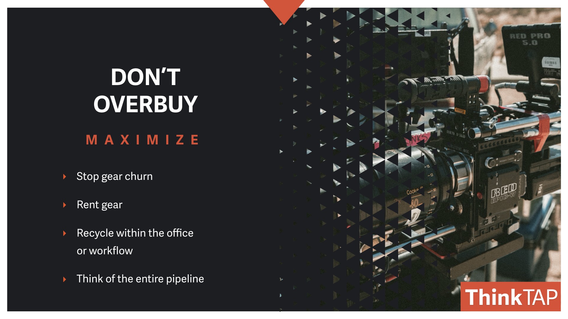 We used to have a person in our office who had a box arrive almost daily from Amazon or B&H. They were constantly buying equipment and then as soon as they decided it didn’t work or they didn’t like it, they were reselling it, but at a loss. You don’t need to overbuy — you need to maximize what you have.