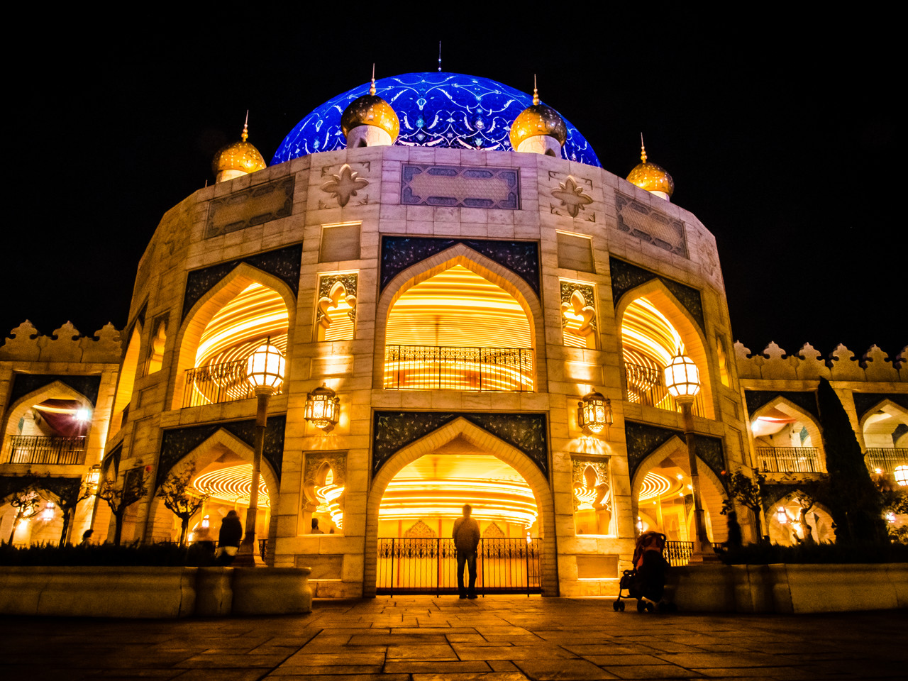 Take this shot of a carousel in Tokyo Disneyland. While the Japanese sure love their cameras, the No Tripod Movement has gone international. While I showed up at the park with a small tripod and a monopod, both had to be checked with security.