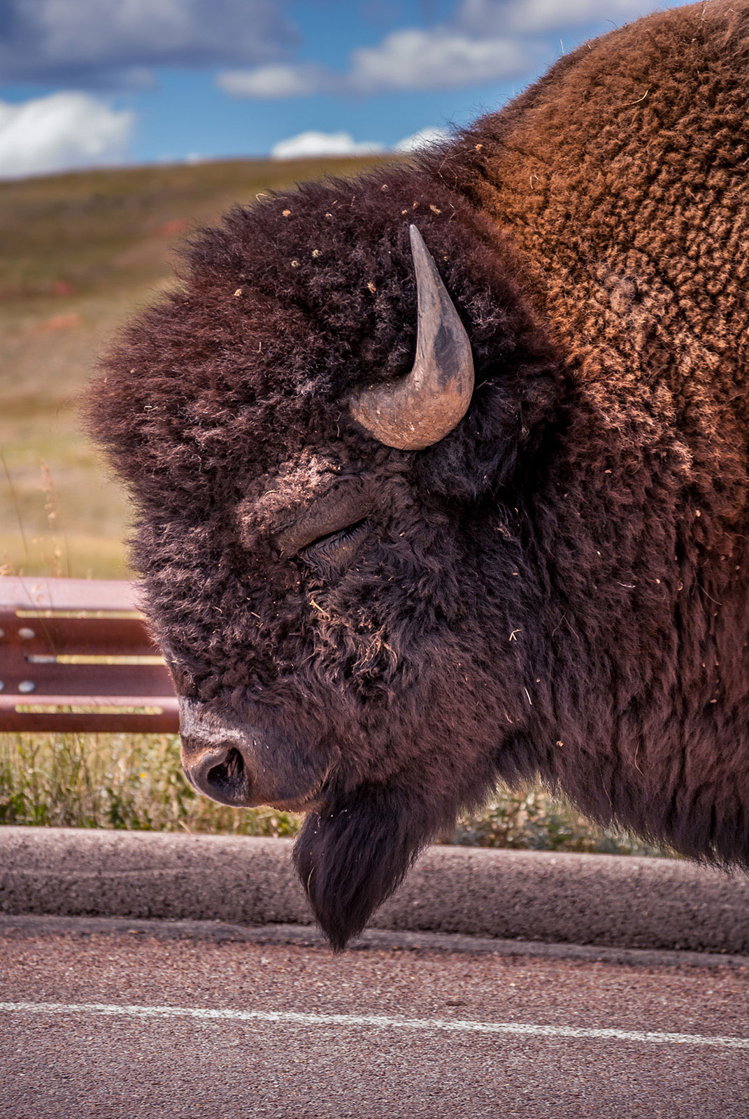 The fact that I somehow — completely unintentionally — wound up within about two or three meters of one of these massive animals in Custer State Park was one incredibly lucky (and at the same time horrifyingly unlucky) moment. It was unlucky in the sense that I wasn’t able to avoid such a close encounter.