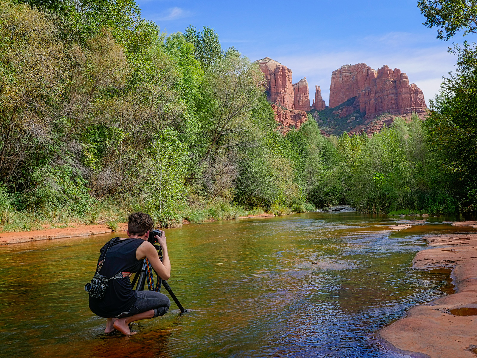 Sedona is a spectacular location with the town built into the red rocks. There are lots of red rock areas in the southwest but no other towns, to my knowledge, that are nestled into the nooks and crannies of the beauty. The benefit to you as a traveler? Staying in Sedona puts your photographic landscapes with a quick hop, skip or jump.