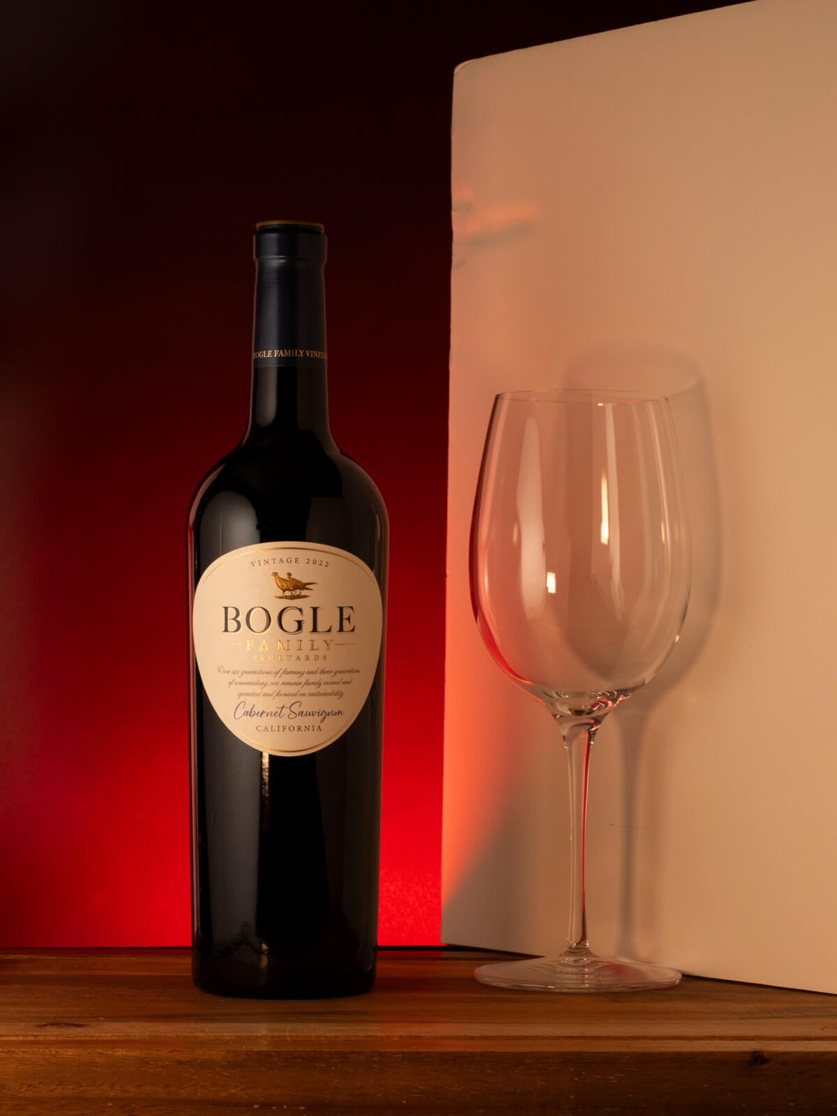 Subjects that have extremely reflective surfaces require large, soft light sources. Large is relative. The scrim I employed in this image was only 20 inches. It’s proximity to the wine bottle and glass. A diffused light was placed behind the scrim to fill the entire surface. If you wanted to show a more specular light within the scrim you could remove that diffuser cover and move the light a different distance from the 20-inch scrim for totally different lighting effects. Looking for something smooth this is how I decided to light it.