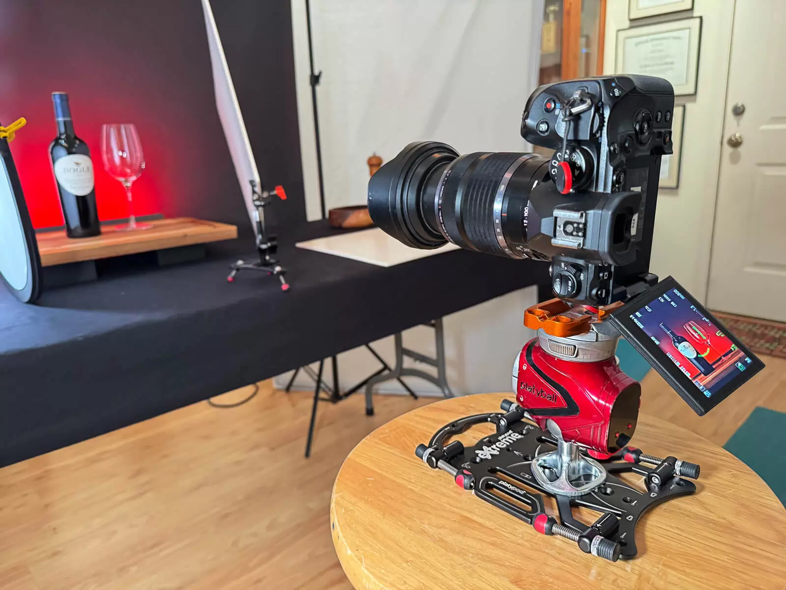 Having lots of doo-dads to maneuver lights, scrims and gobos helps a lot. Check the set photo to see how easy it is to move things close yet still stay out of frame. In the past I was always tripping over tripods, and large and small light stands. No more. It’s much easier to work on the set.