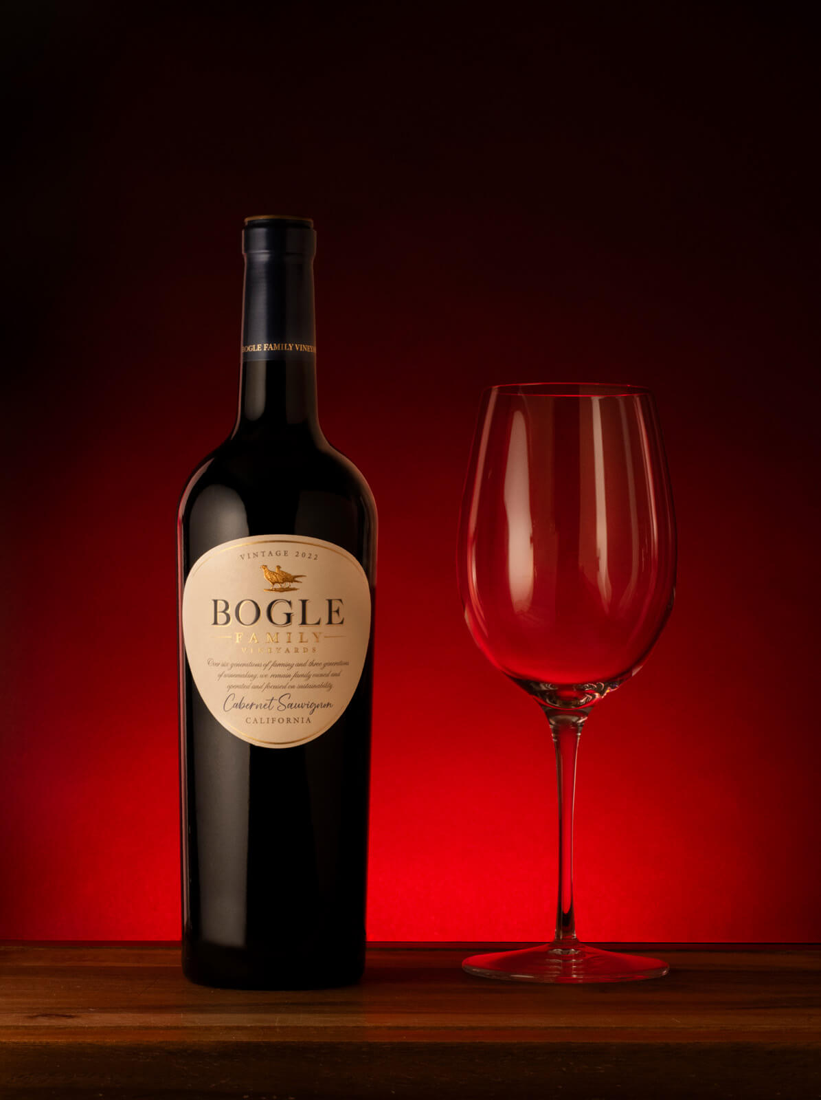 In order to add some more light to the other side of the wine bottle I brought in a reflector card. On this set it needed to be close for the highlight outline which brings it into the picture. It required a mother frame capture which was stripped in during post production. Another frame was also used to reflect light smoothly on to the label. Many times I will piece an image together only concerned with a specific place on the subject. All images are them assembled using Photoshop layers. If you use this technique be very careful to not disturb and of the subject when moving reflectors. Your camera should be triggered with a remote to keep any movement as well.