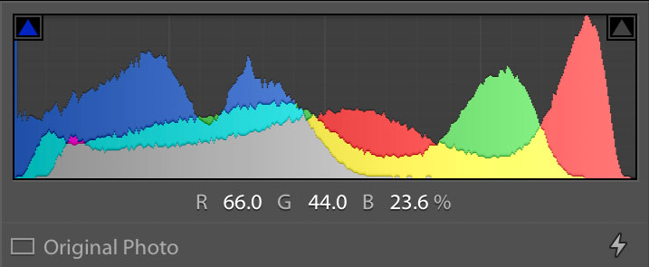 When editing a color photograph, you’ll notice your histogram will have red, green, blue and other colors to it. The other colors like cyan and magenta come from when the red, green and blue colors overlap.