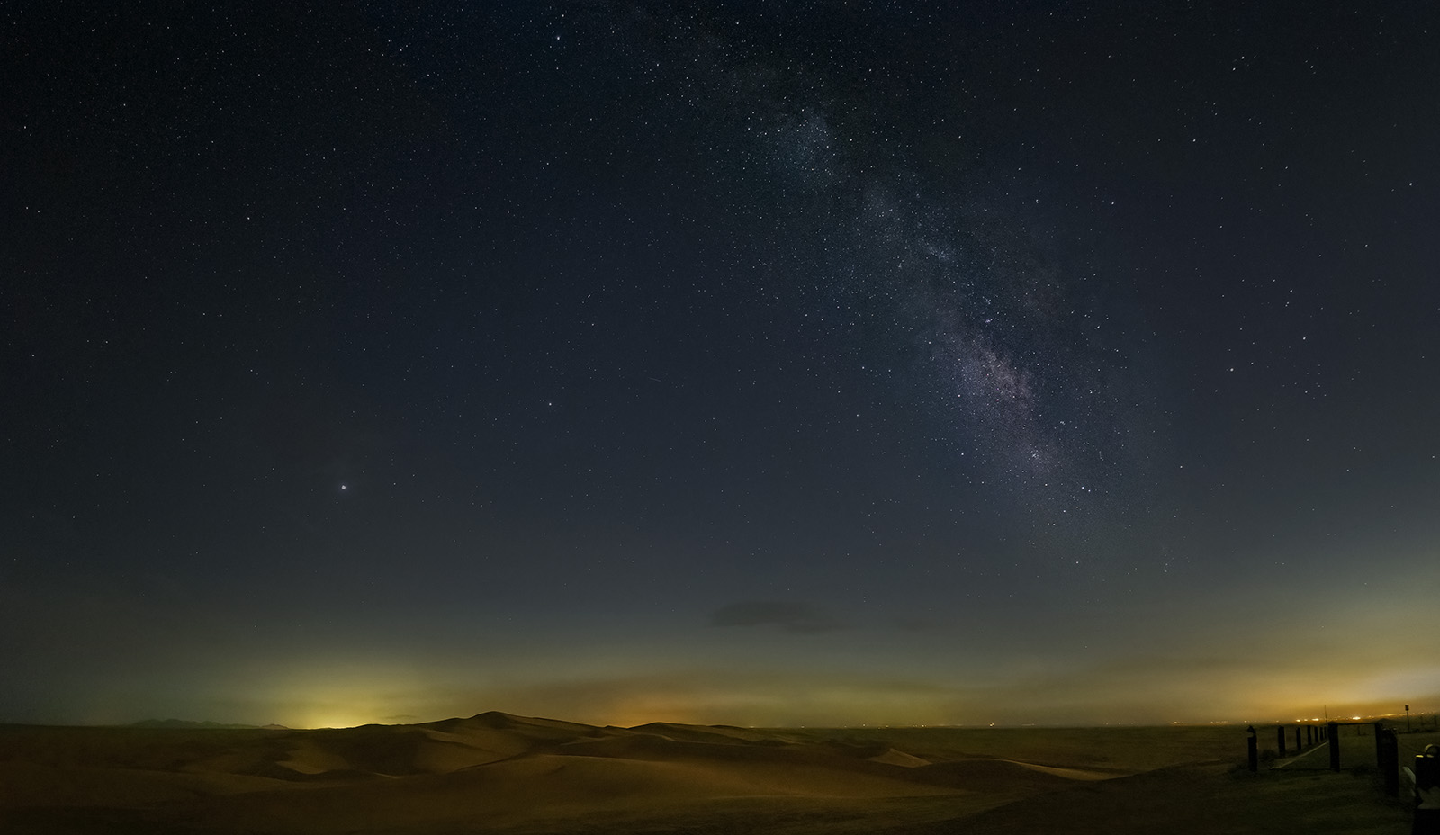 Since I was boon-docking and sleeping in the Bureau of Land Management space, I was looking forward to my next goal of capturing the Milky Way over the dunes. Bummer there are city lights on the horizon eating up the Galactic Core.